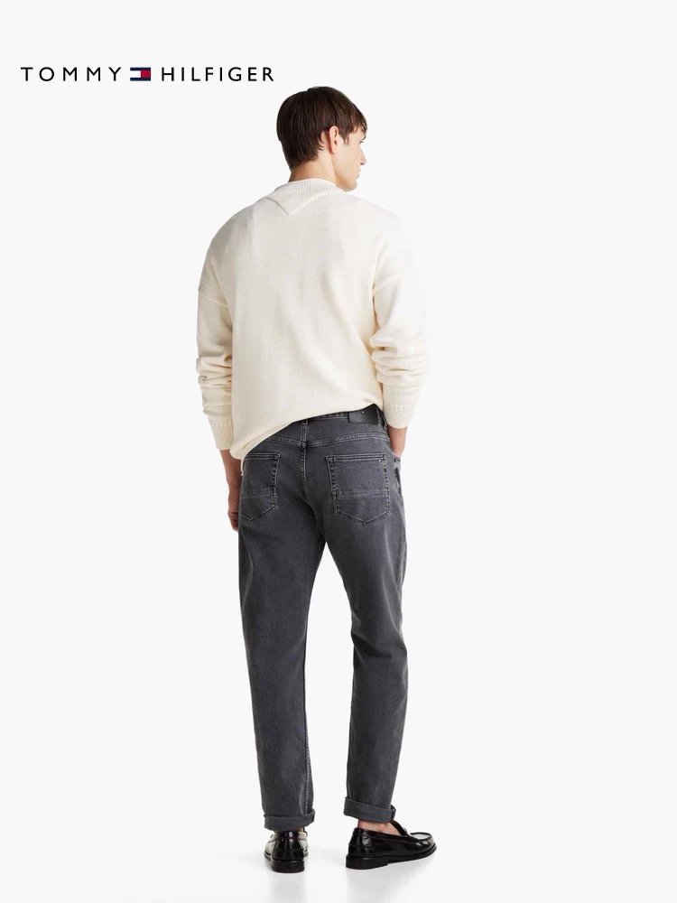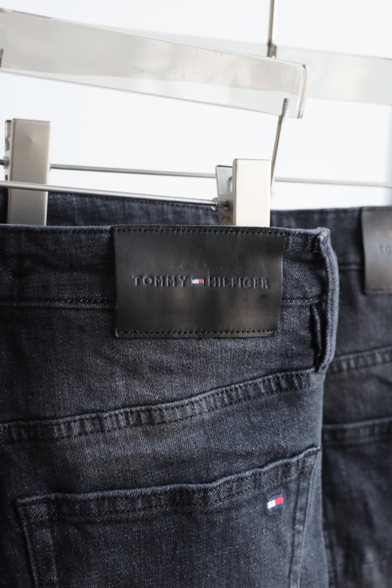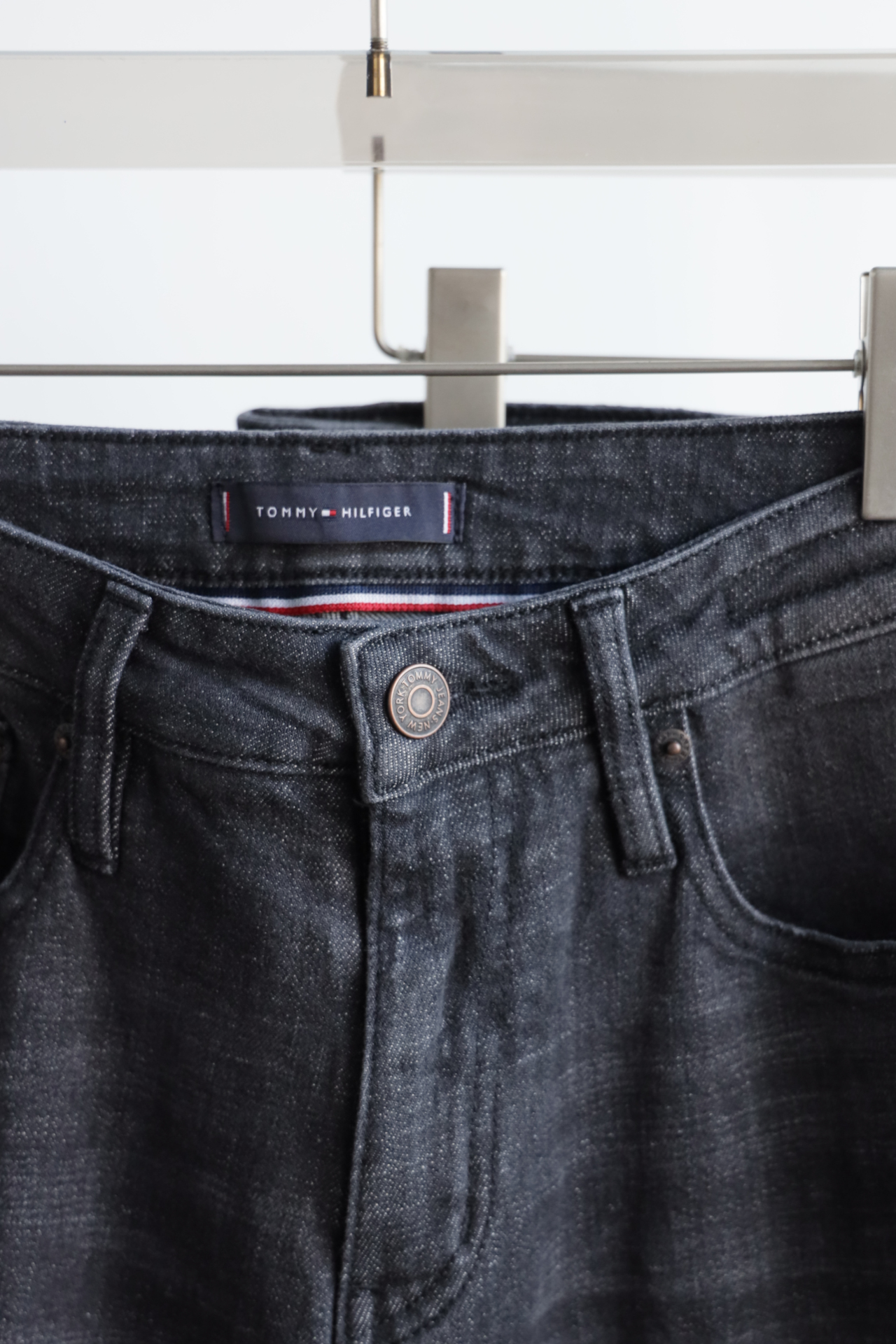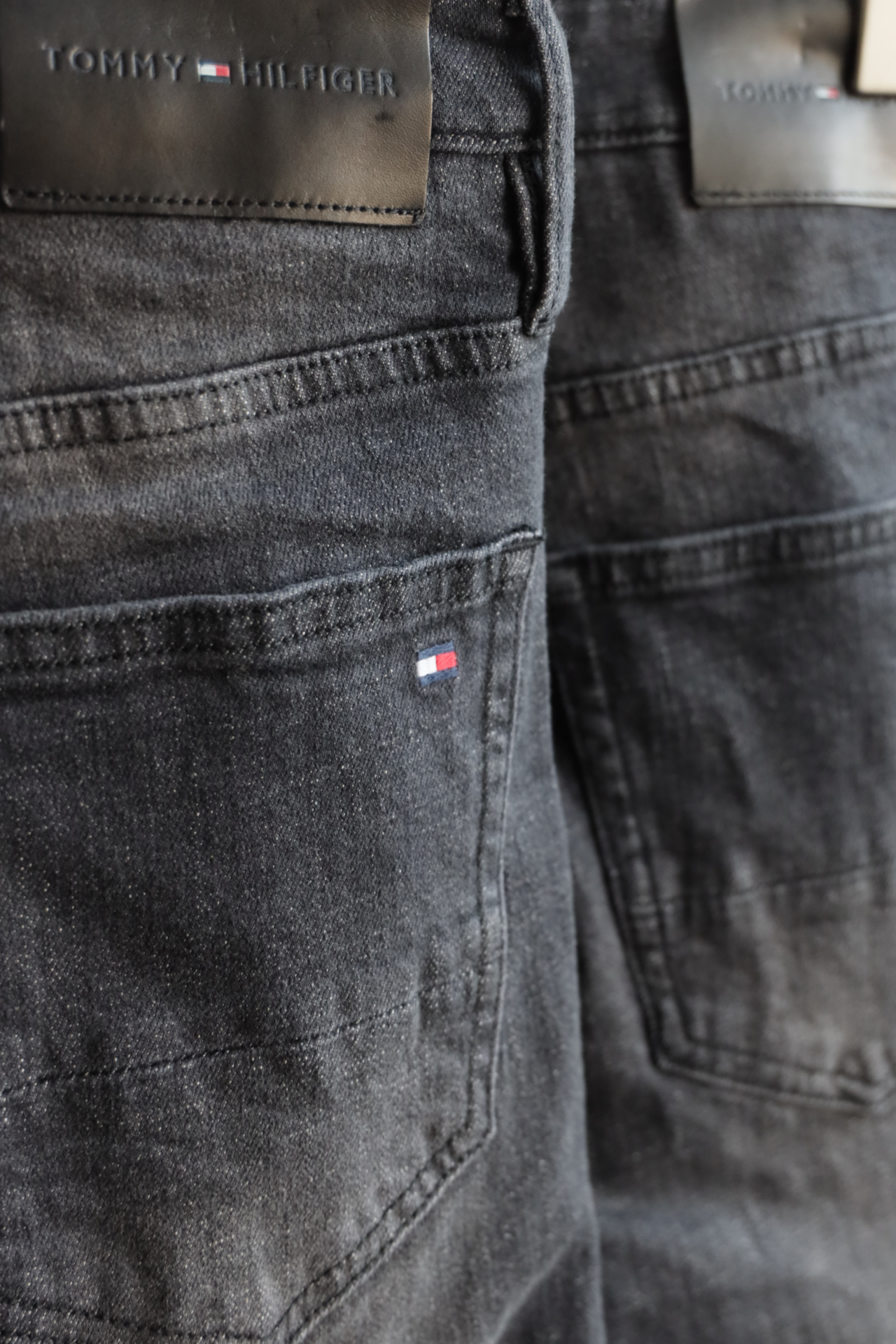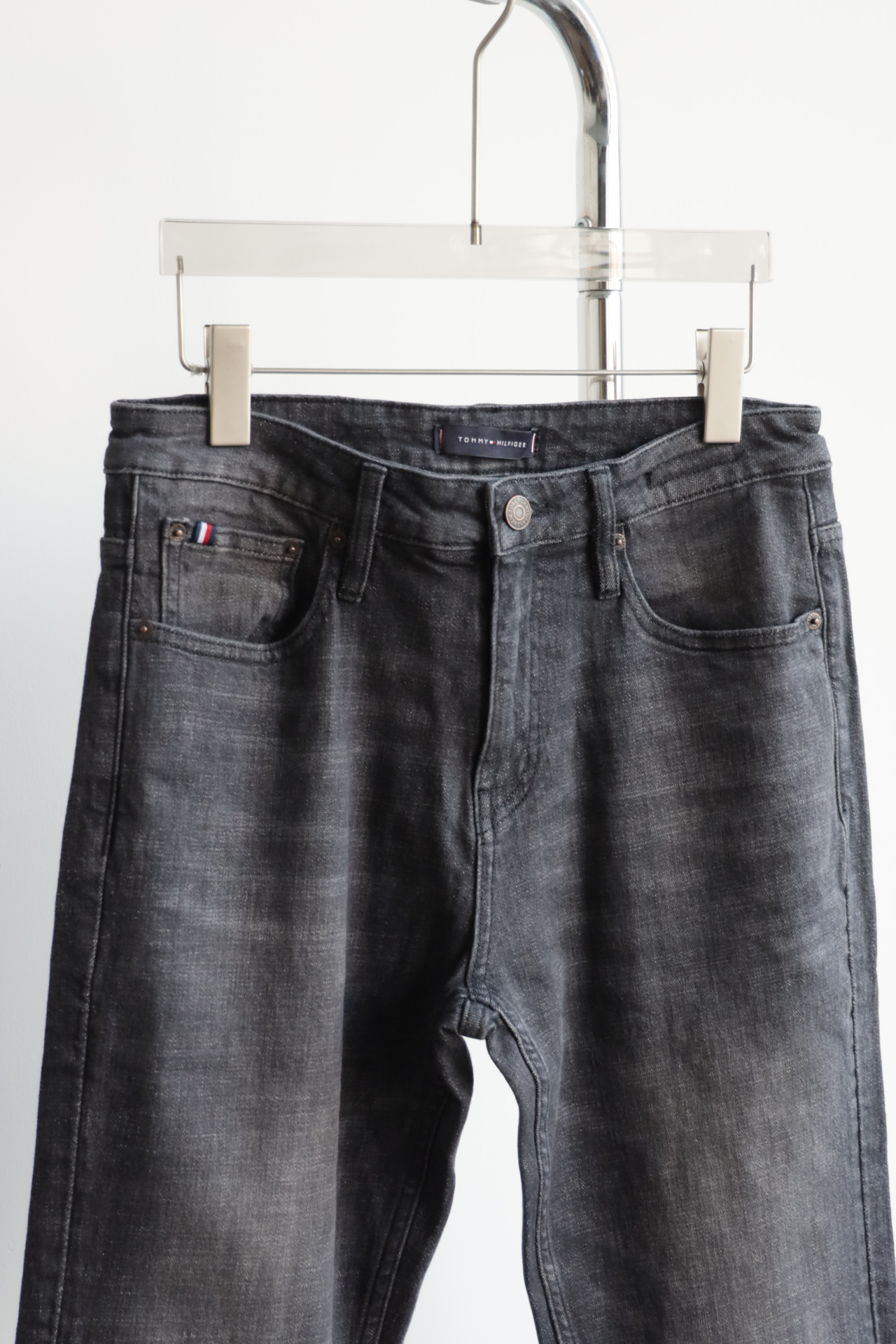 T.H 男款 小直筒 黑灰洗水棉弹牛仔裤