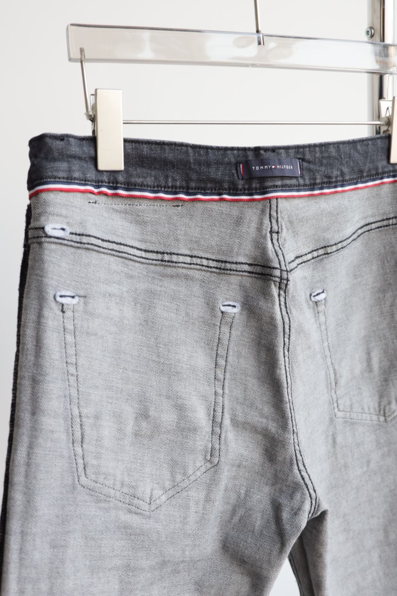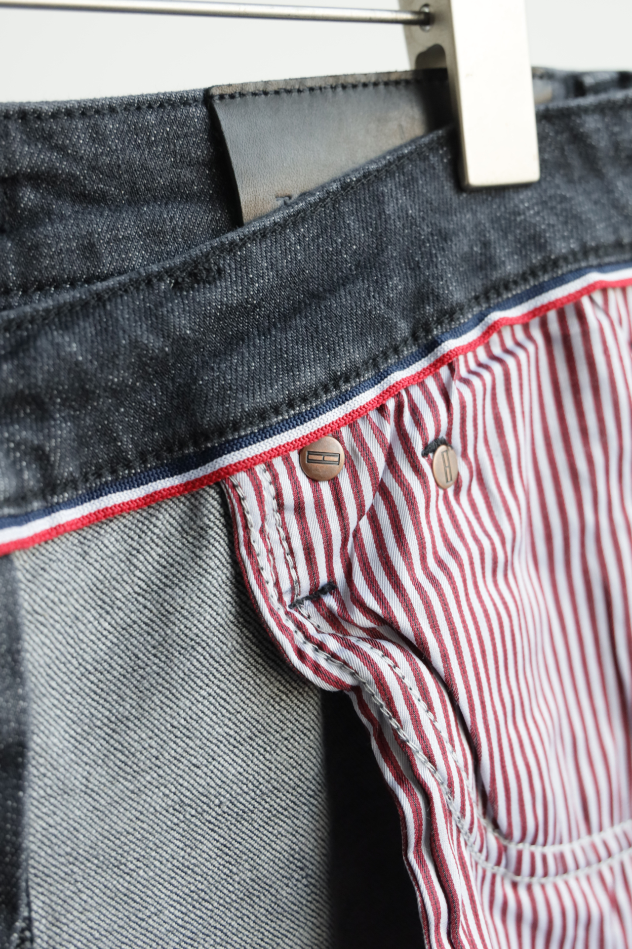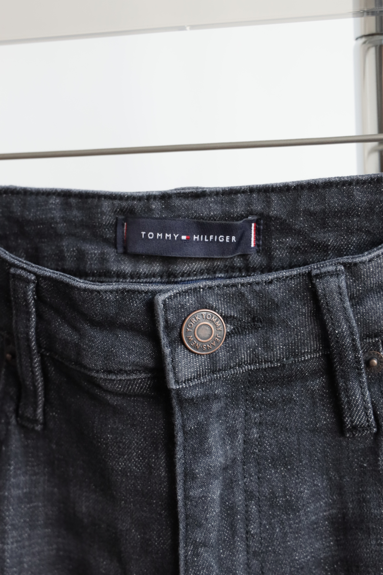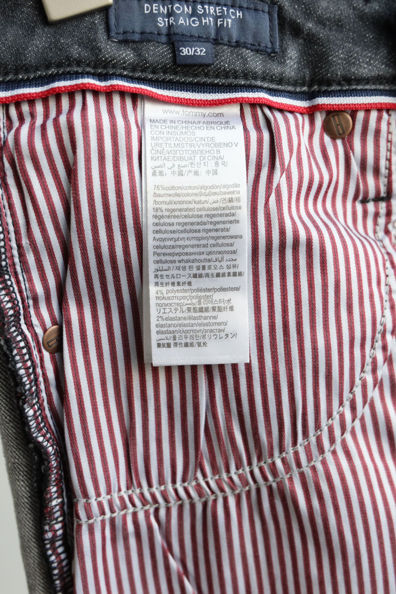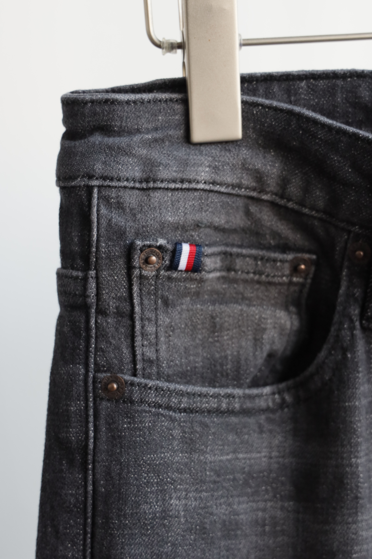 T.H 男款 小直筒 黑灰洗水棉弹牛仔裤