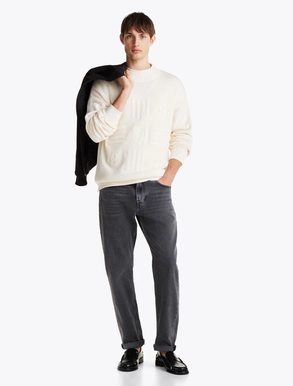 铜制拉链门襟中腰修身小直筒,简单好搭,后腰真皮腰牌