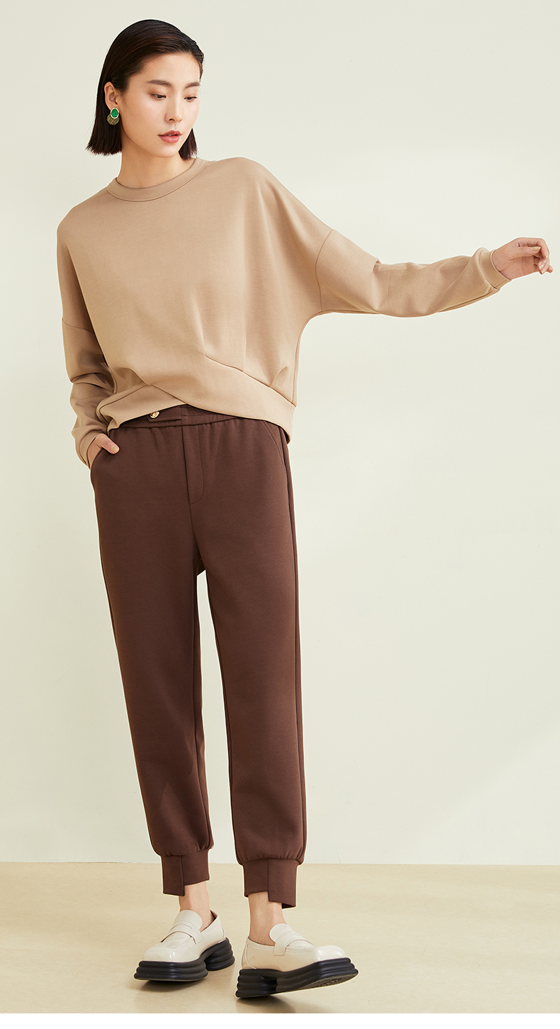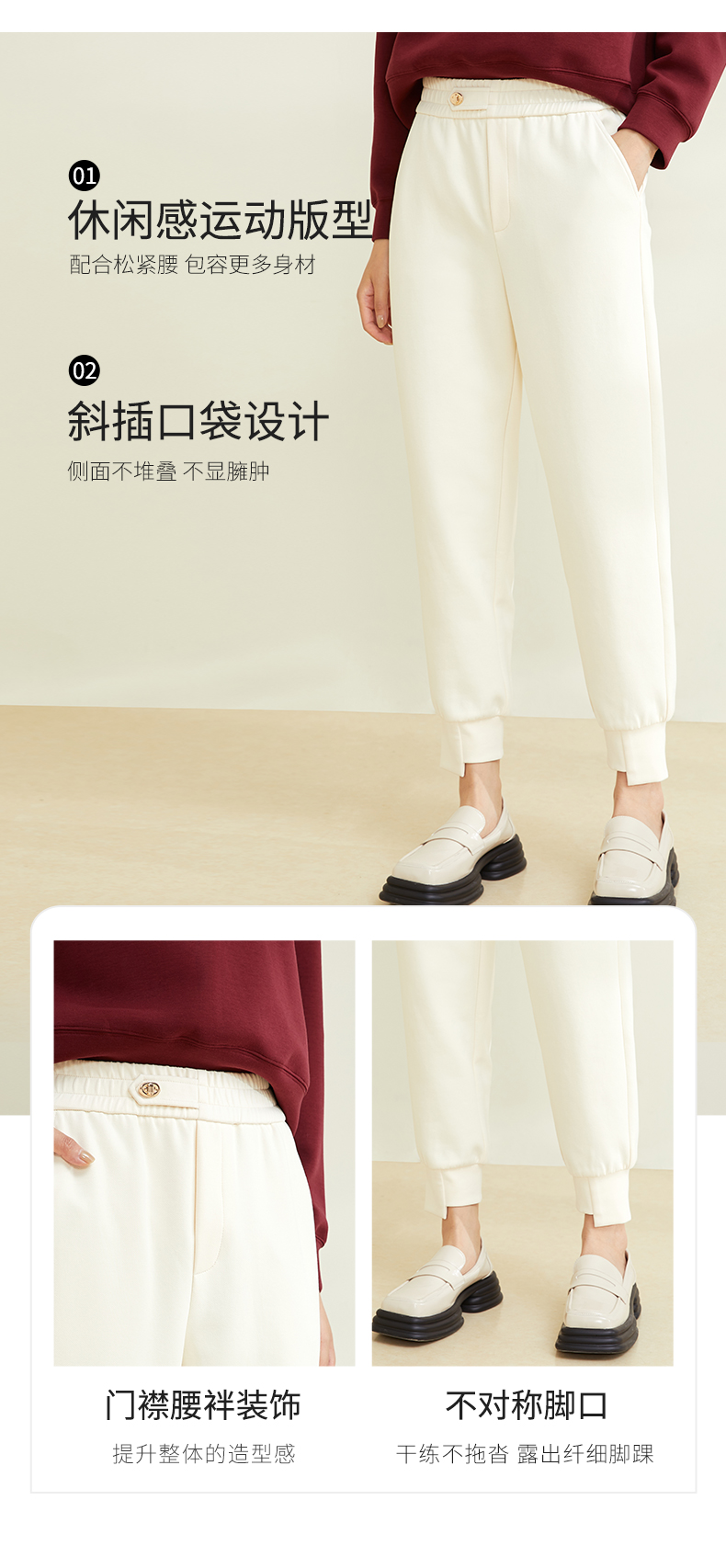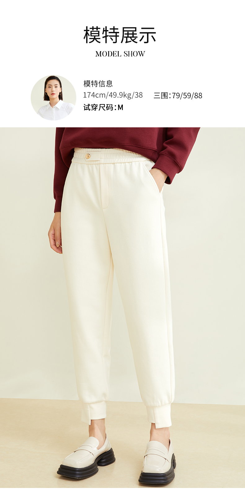 玳莎设计感卫裤女新款显瘦松紧腰休闲裤百搭束脚运动长裤 CC36307
