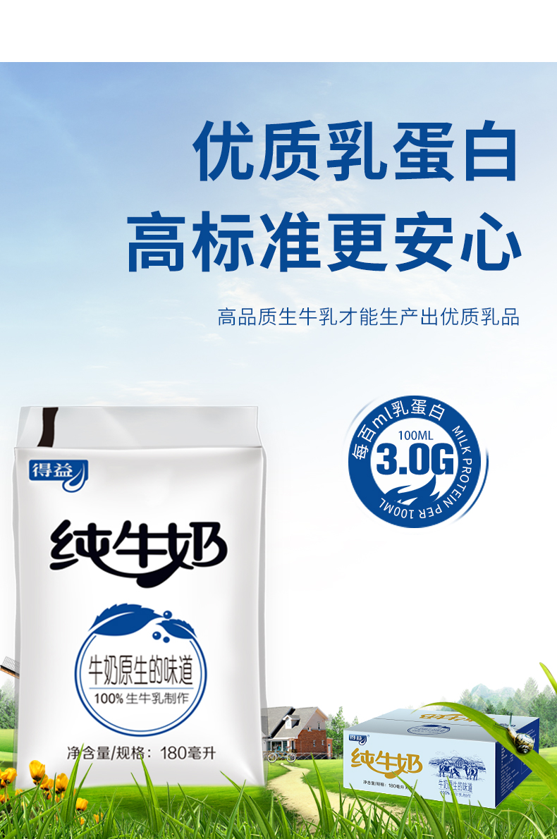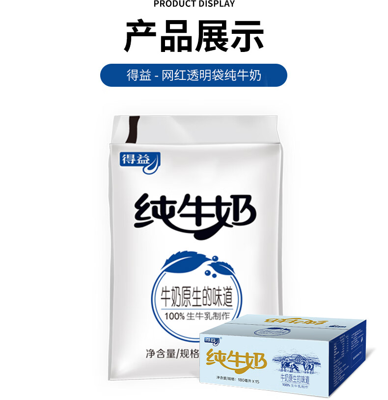 低温 鲜牛奶得益 网红透明袋 甑选奶源 纯正奶液 孜然清甜180ml/袋