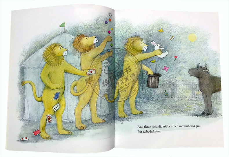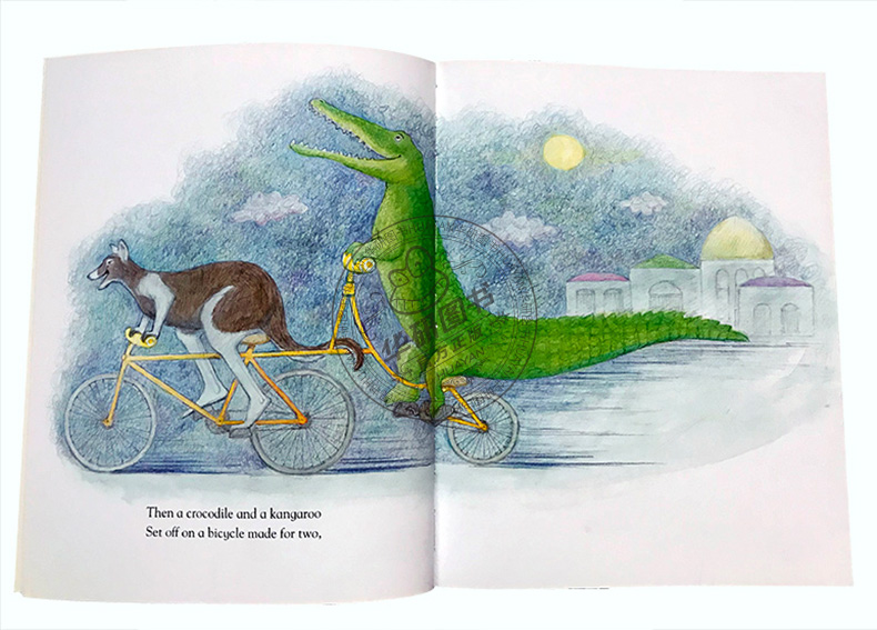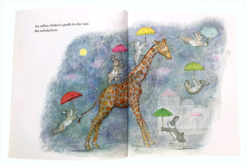 鳄鱼和袋鼠竟然会骑双人单车,三只狮子上演了马戏,四只狗熊开始做果酱,五只火烈鸟居然变得粉蓝相间,六只兔子……十只公鸡在给大家放哨。天亮了,饲养员发现这些动物们异常地累,太阳升起了却还在睡觉。究竟昨夜动物园发生了什么呢? 他们都不知道,只有你知道。