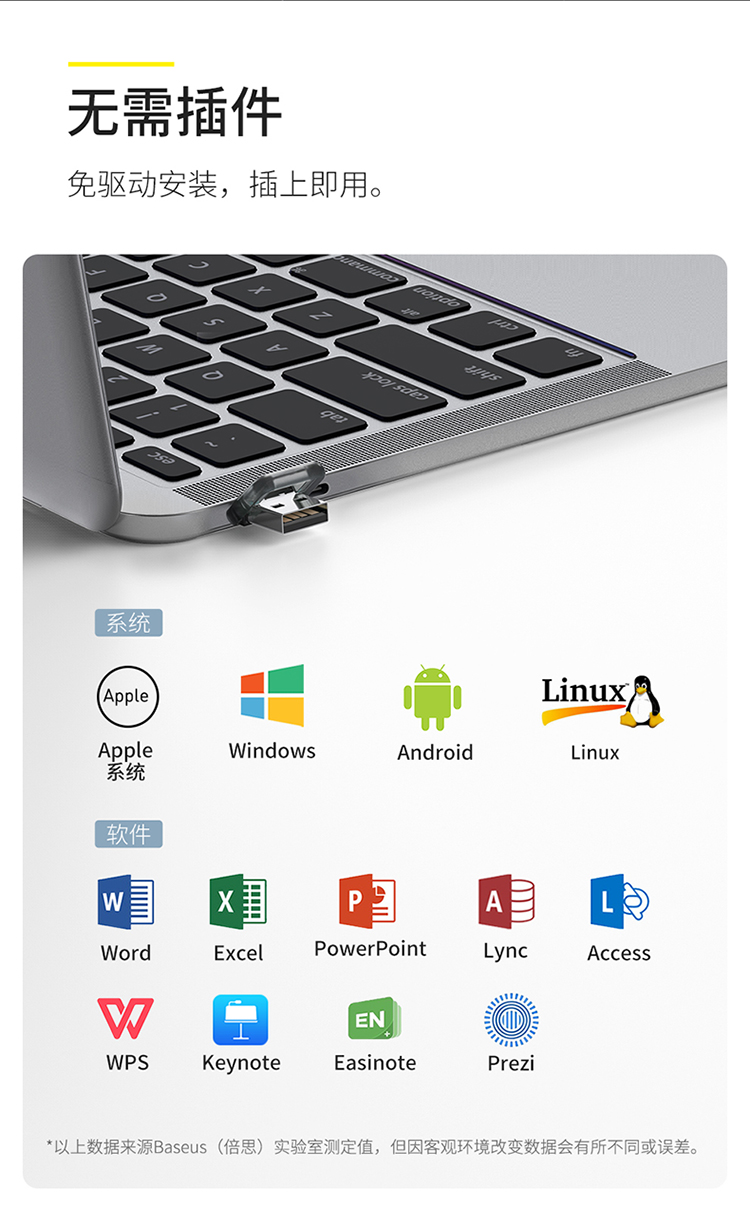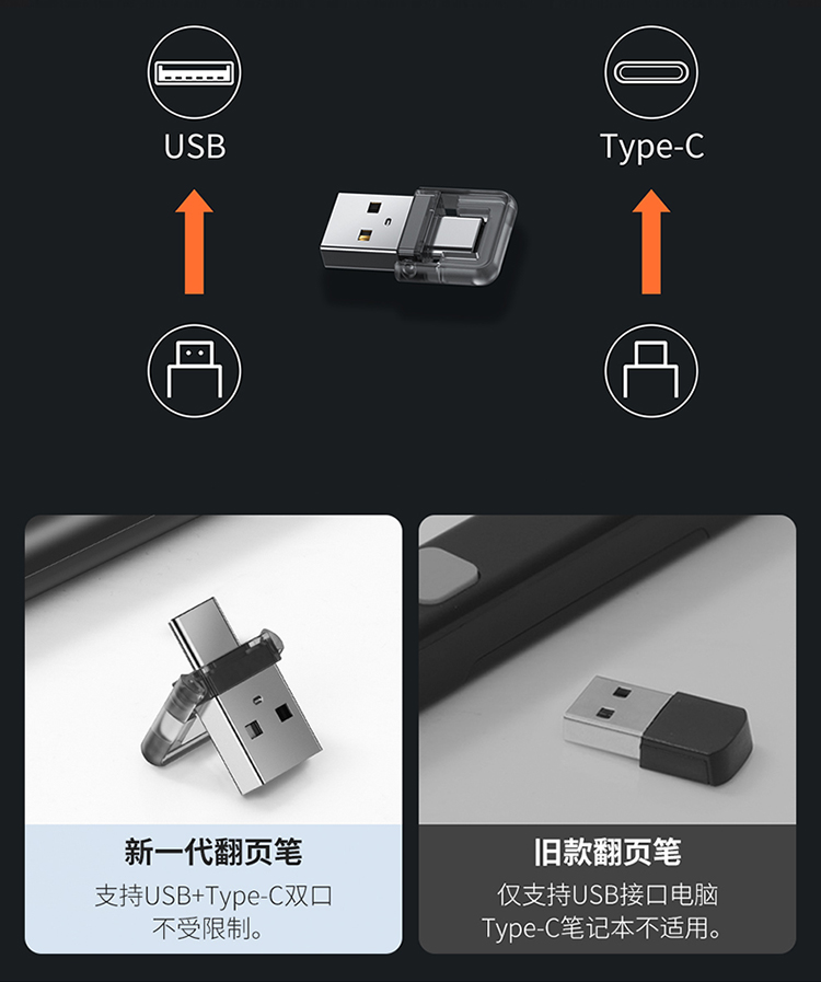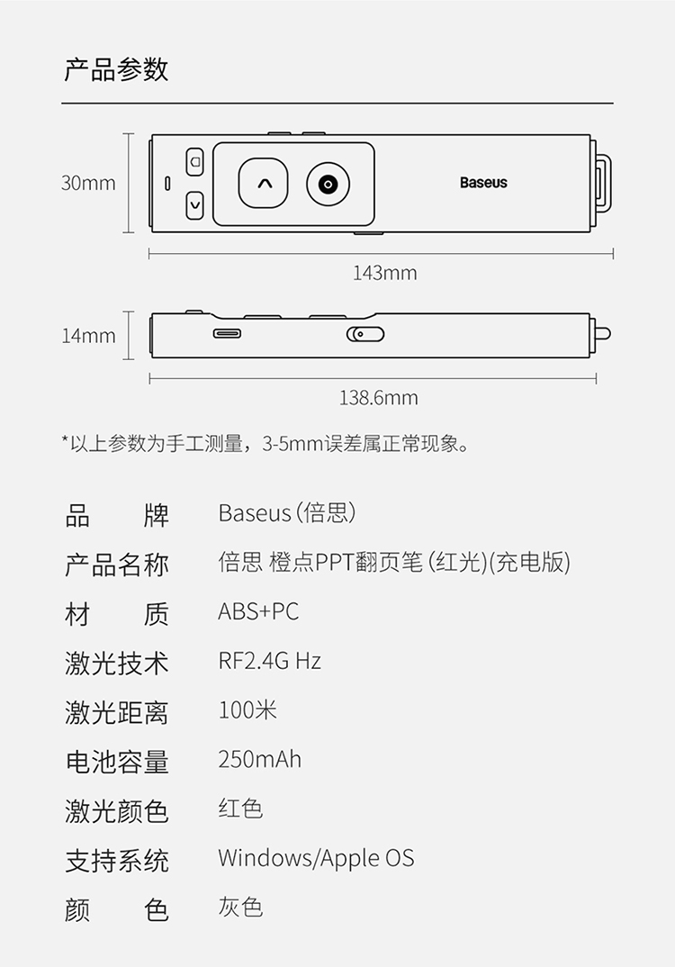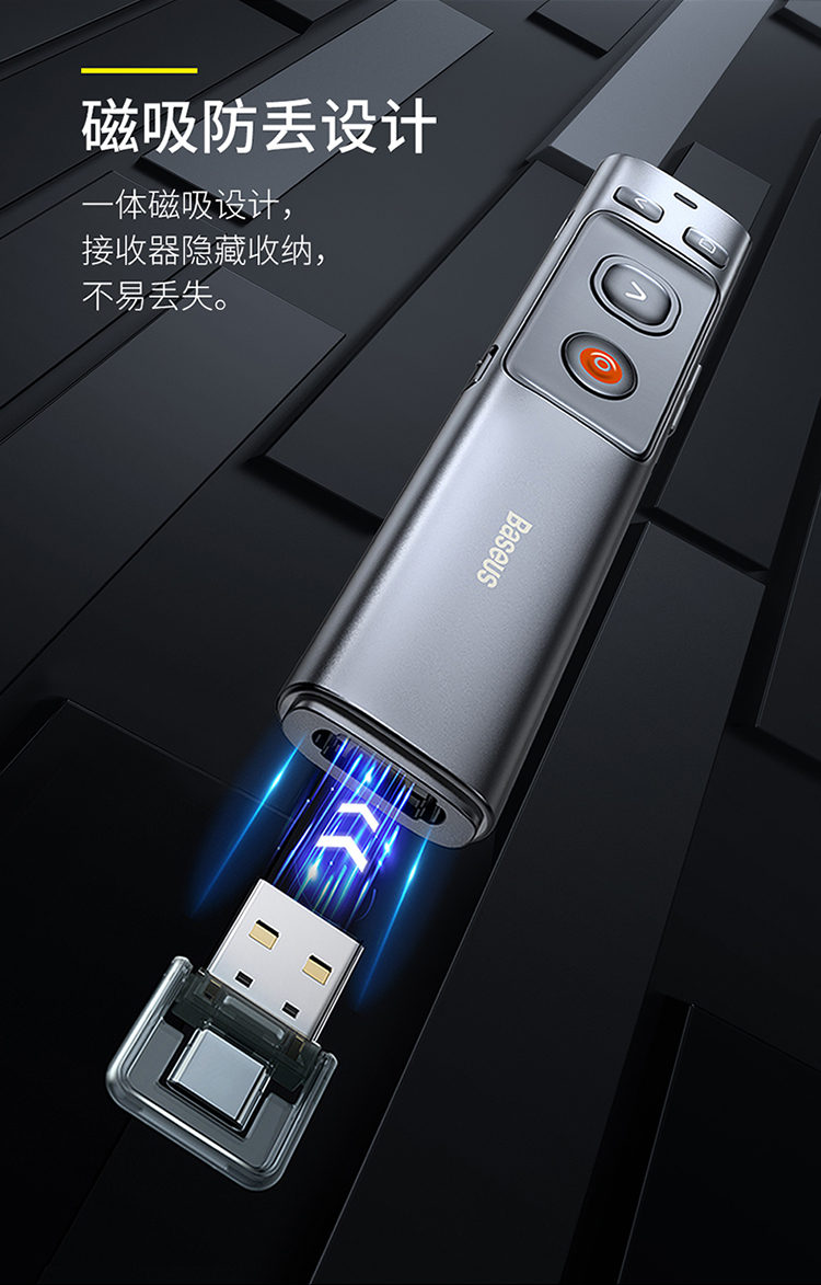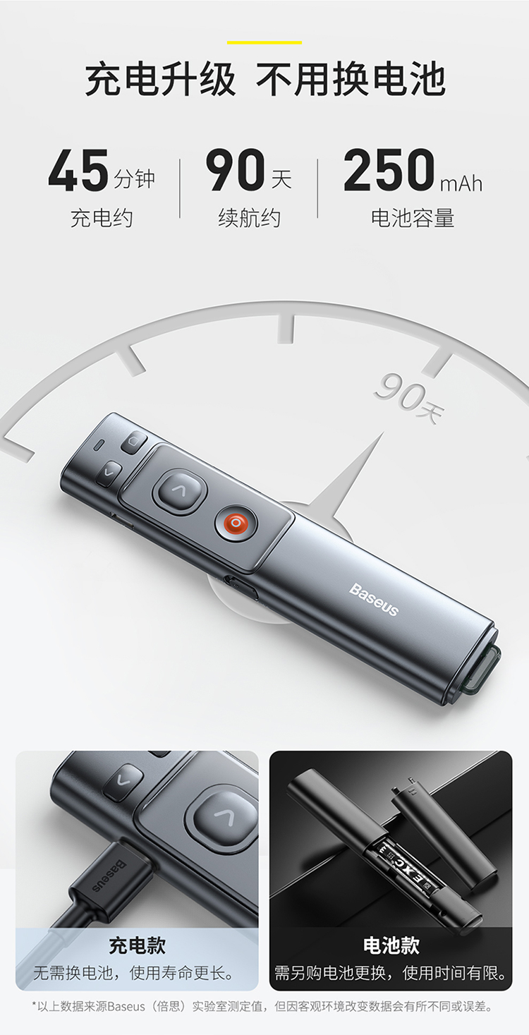 倍思 橙点PPT翻页笔(红光)(充电版)(含:简易通用数据线 Type-c 3A 0.5M 黑色)