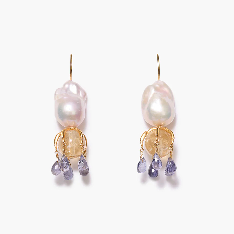 订购6周到|Chan Luu-Lark-云雀 淡水珍珠 黄水晶 堇青石 耳环[美国设计师]