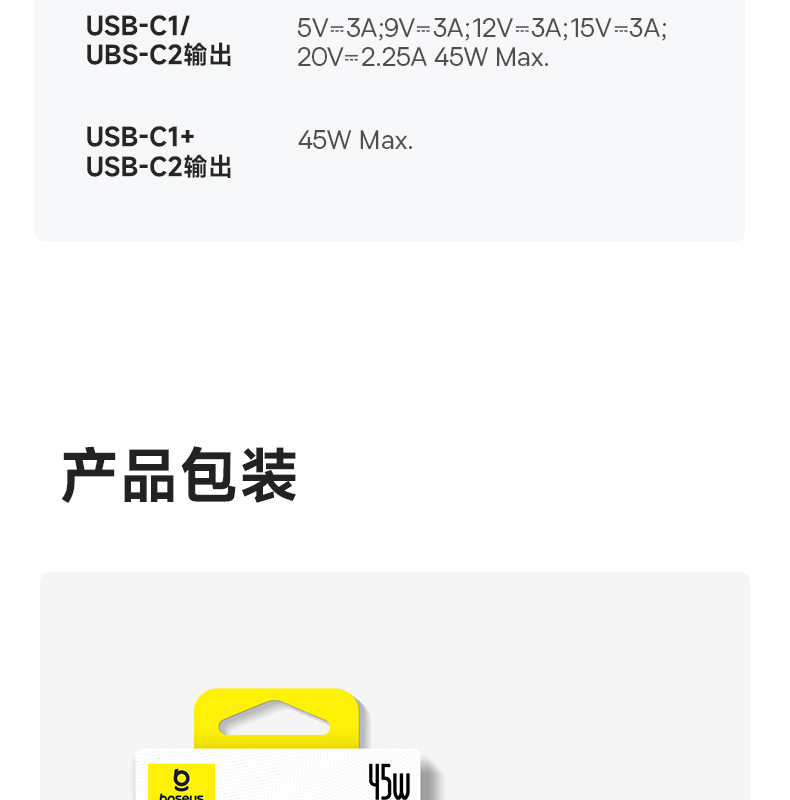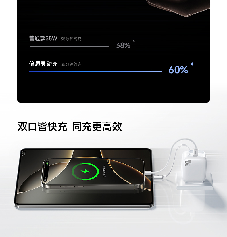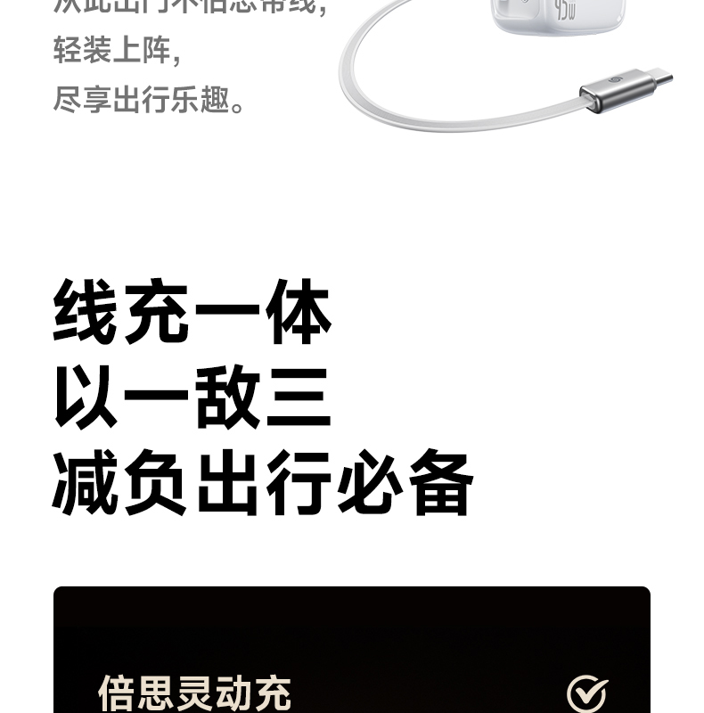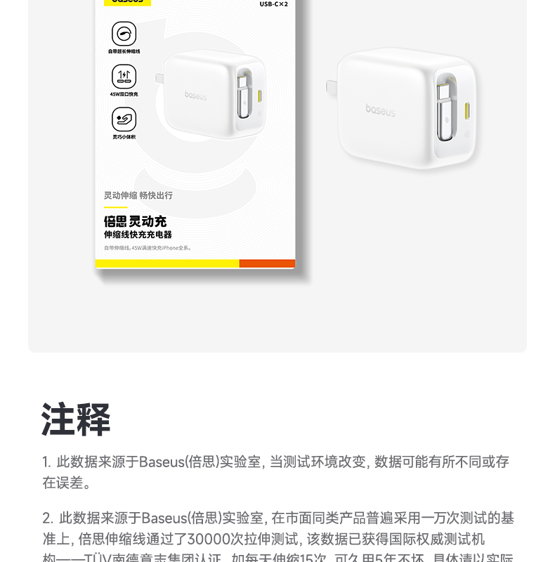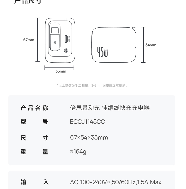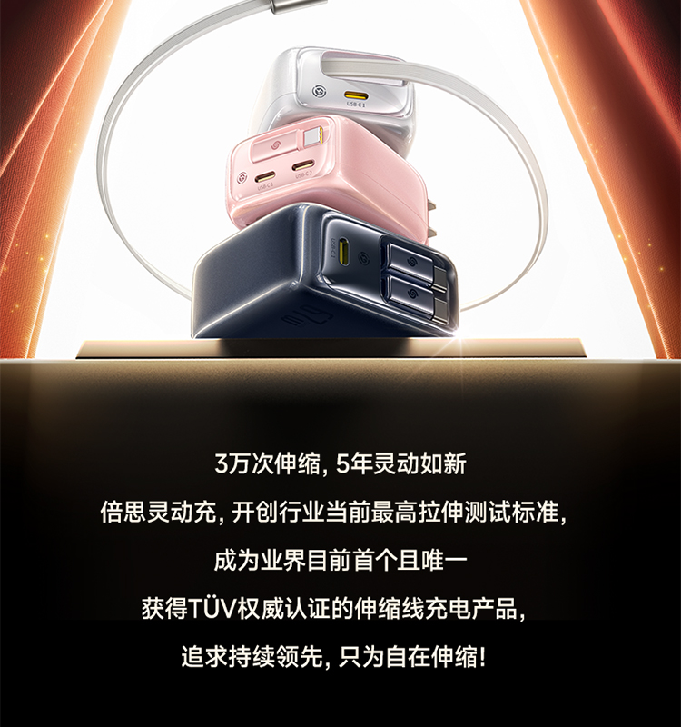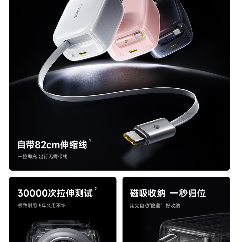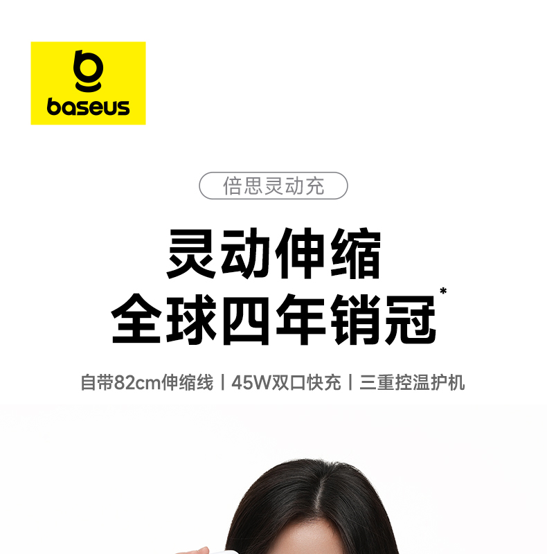 【国家3C认证】倍思灵动充 EnerCore CJ11 伸缩线快充充电器 2C 45W/67W