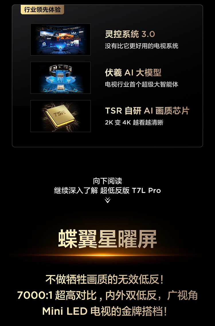 TCL电视 85T7L Pro 85英寸 QD-Mini LED 蝶翼星曜屏 万象分区 绚彩XDR 2200nits 超薄电视