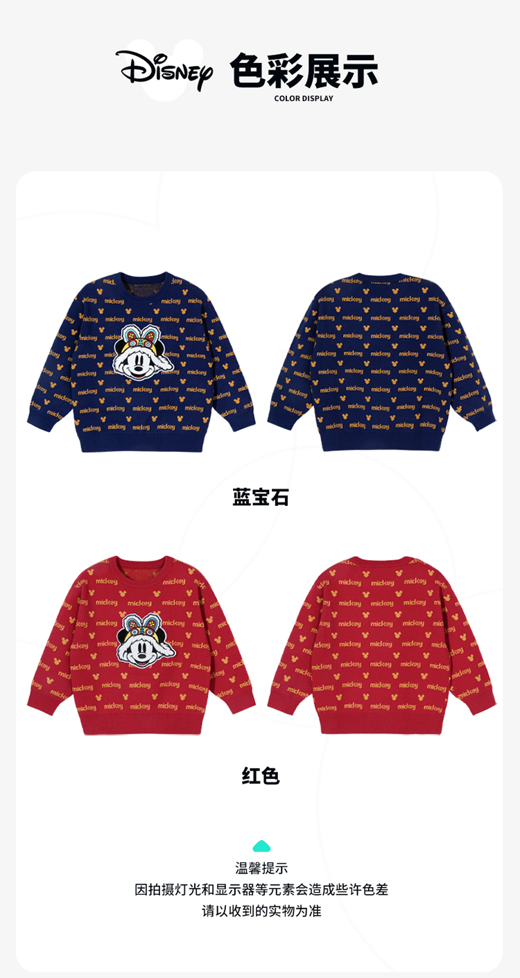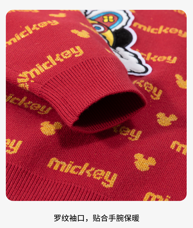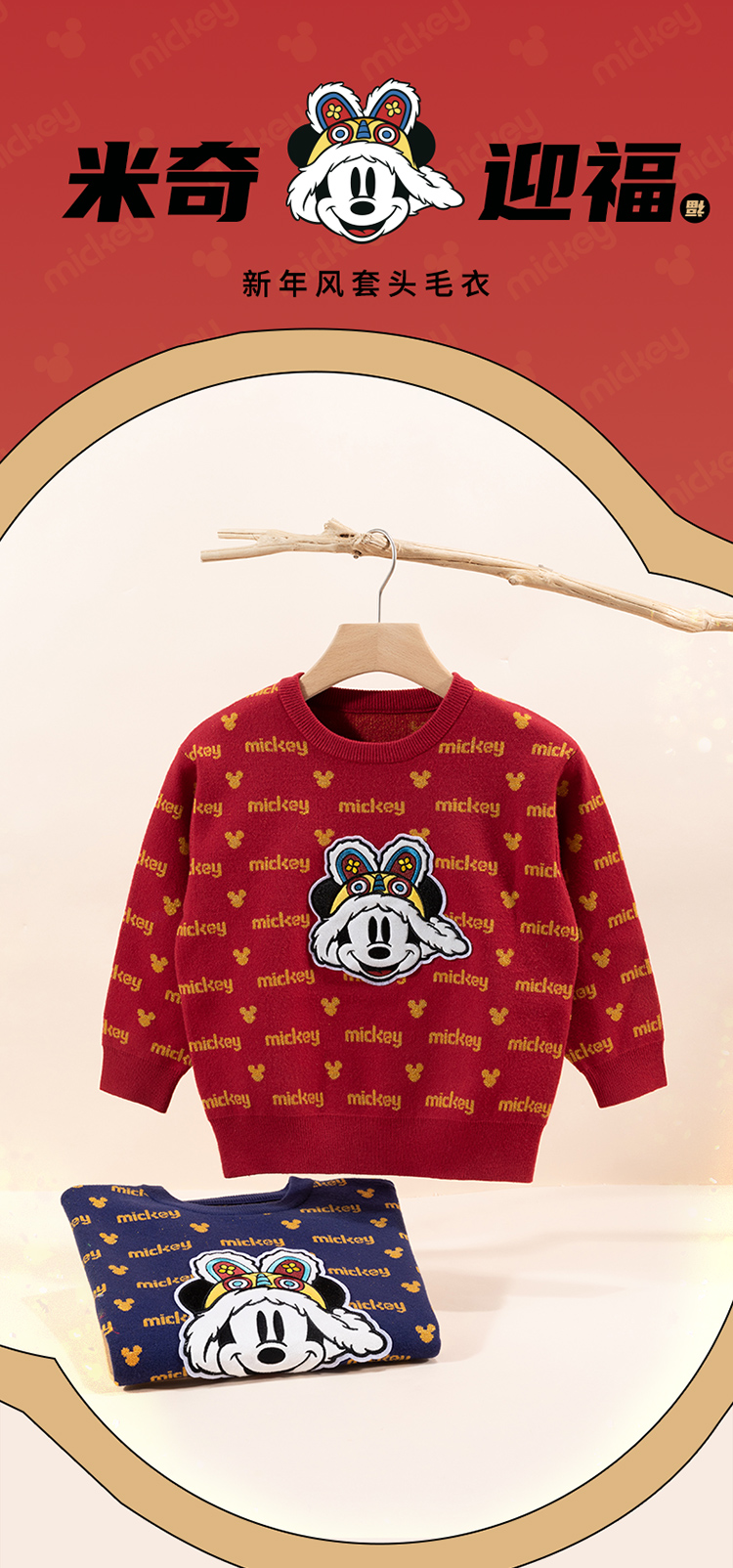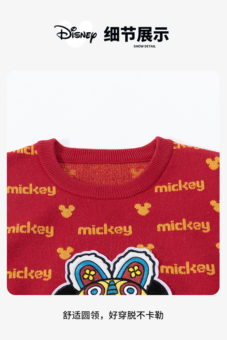 迪士尼童装秋冬款男童米奇长袖毛衣套头针织衫宝宝拜年服233S1860