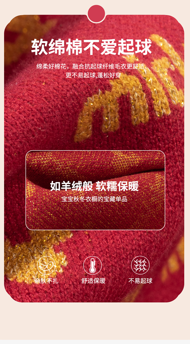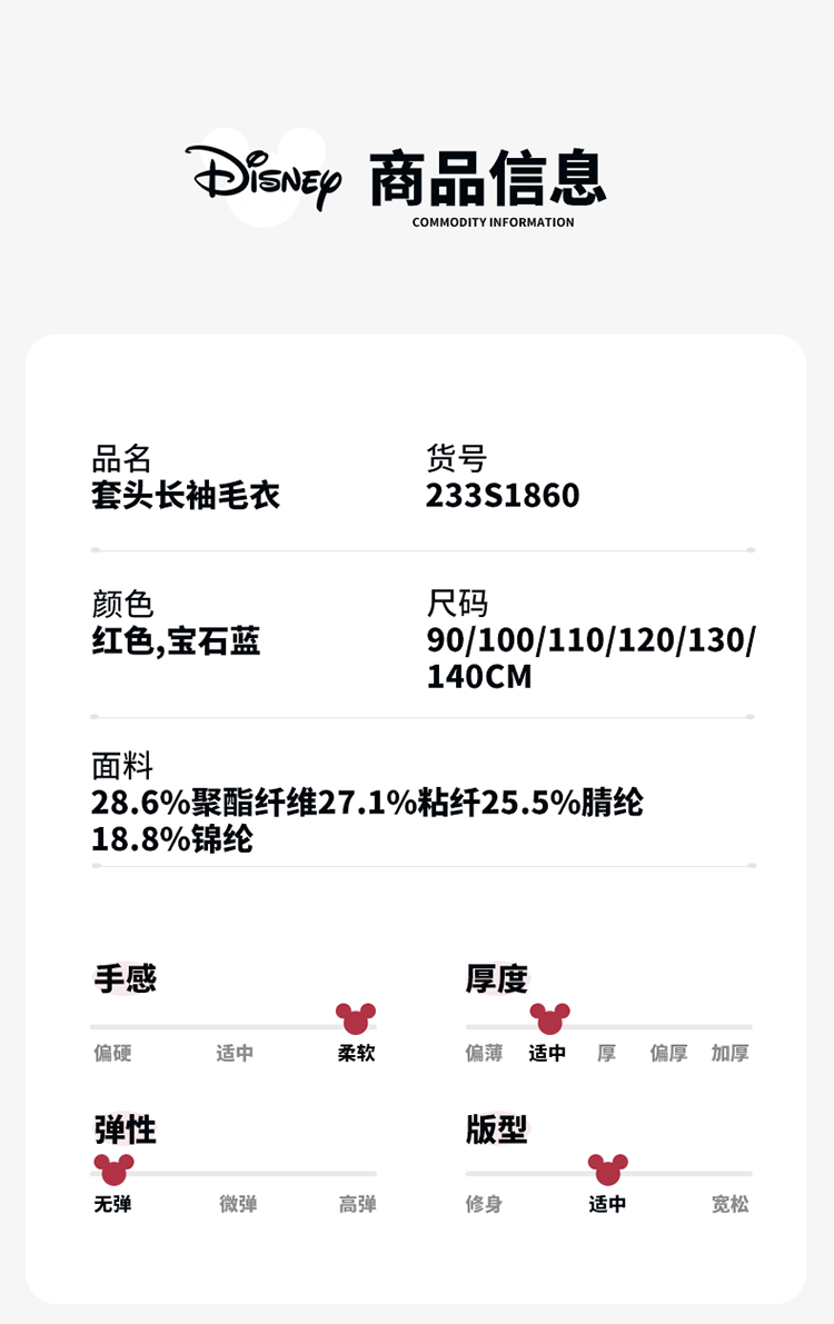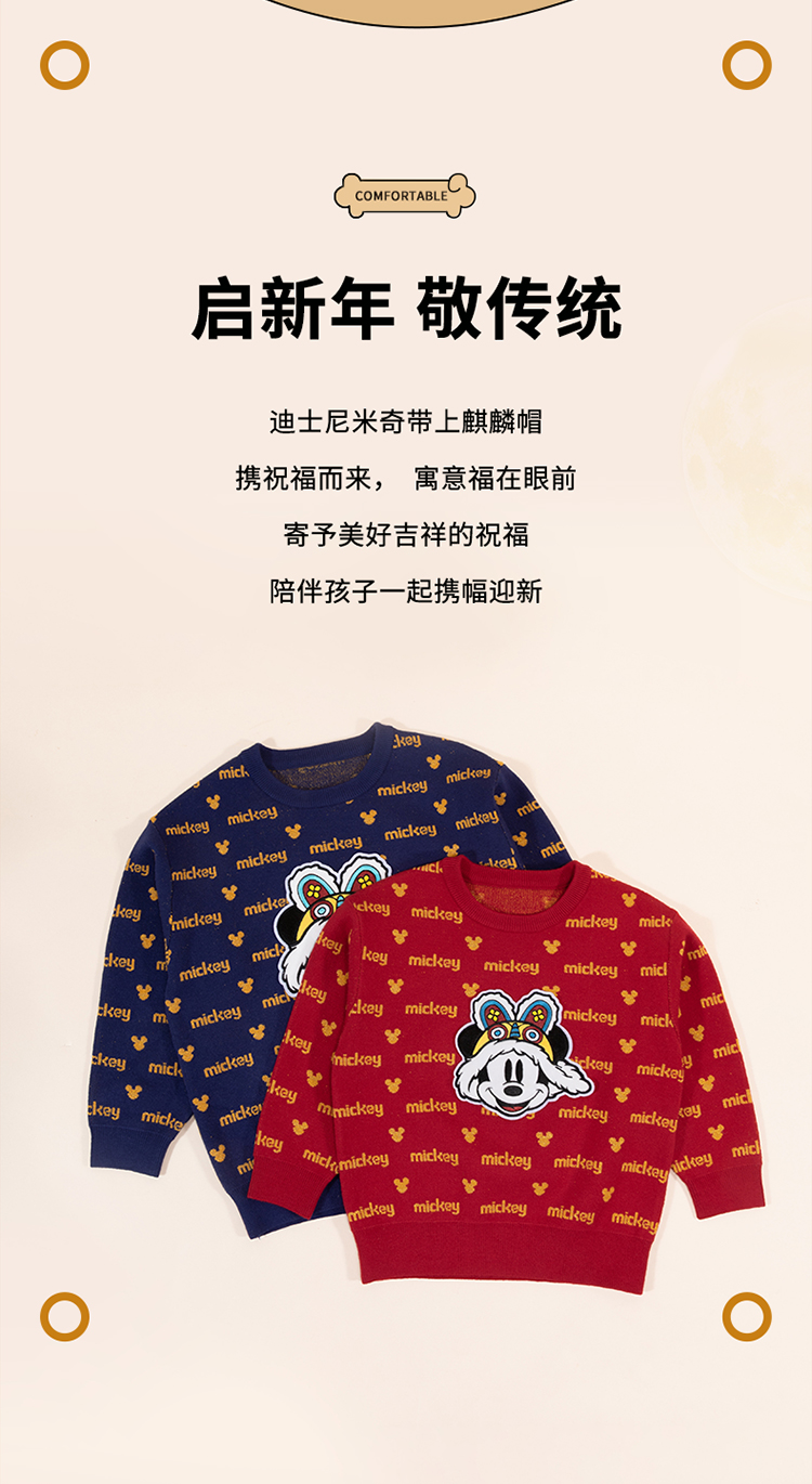 迪士尼童装秋冬款男童米奇长袖毛衣套头针织衫宝宝拜年服233S1860
