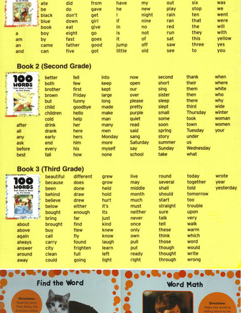 书名:100 Words Kids Need to Read 美国小学生应掌握的100词汇练习册(1-3年级三册共300词)