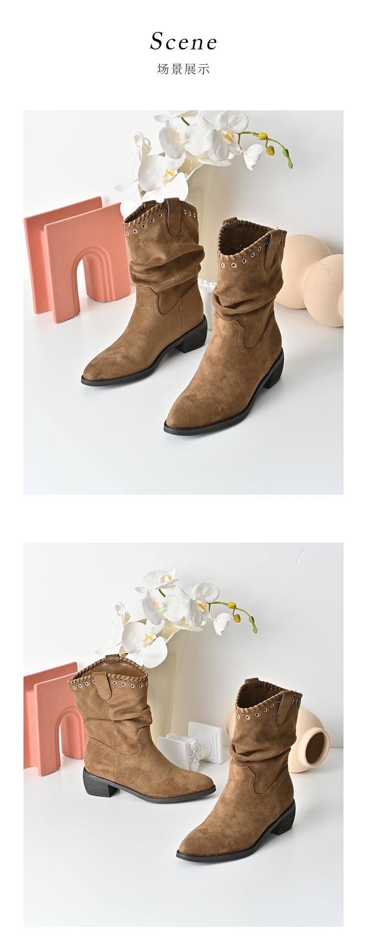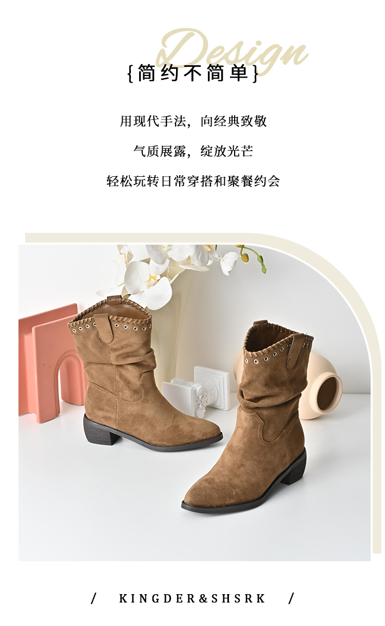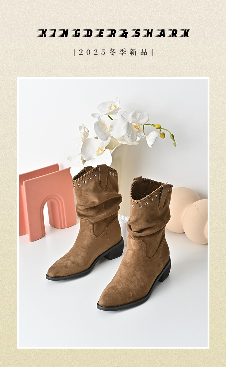 经典鲨2025年冬季专柜新款尖头中粗跟褶皱堆堆靴短筒靴KW192-558011