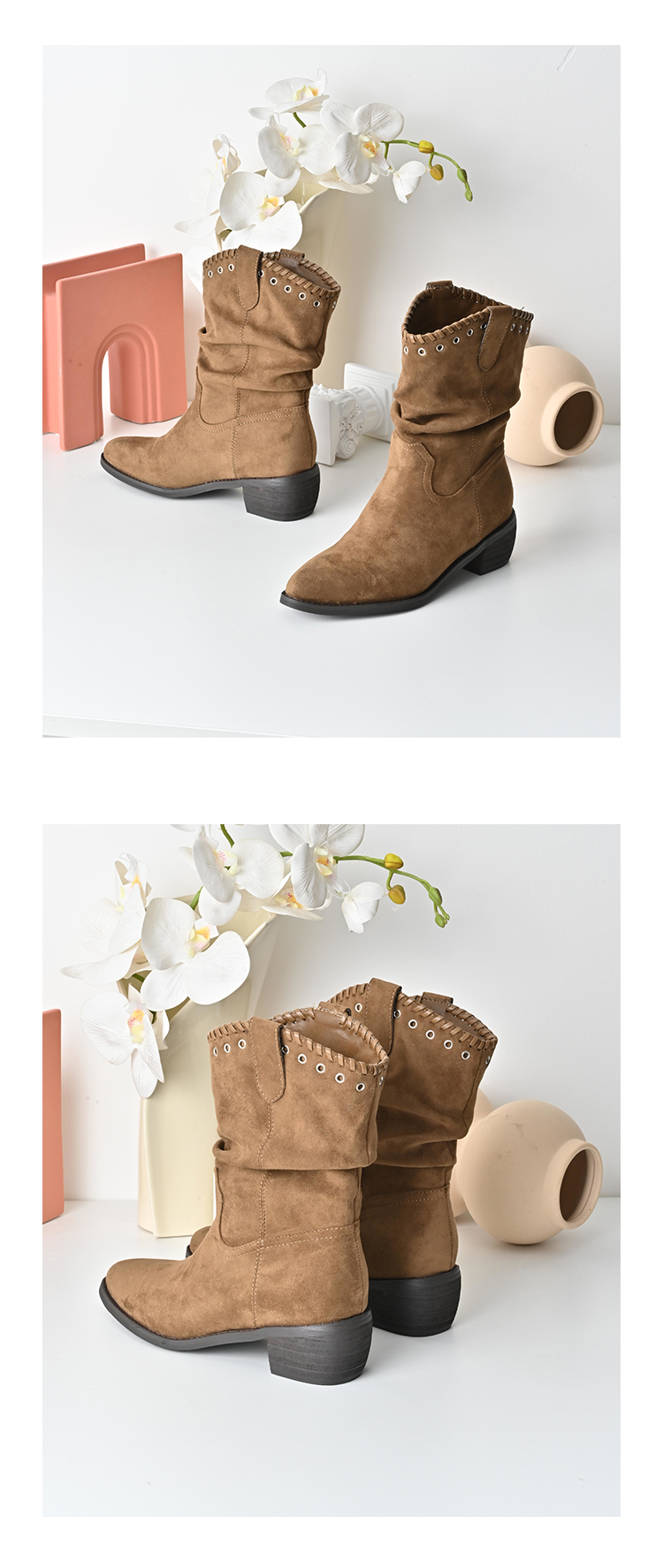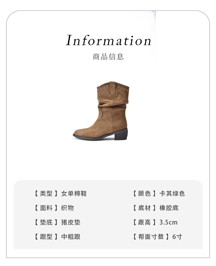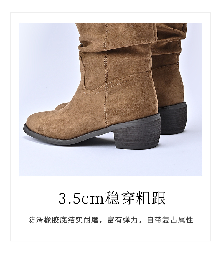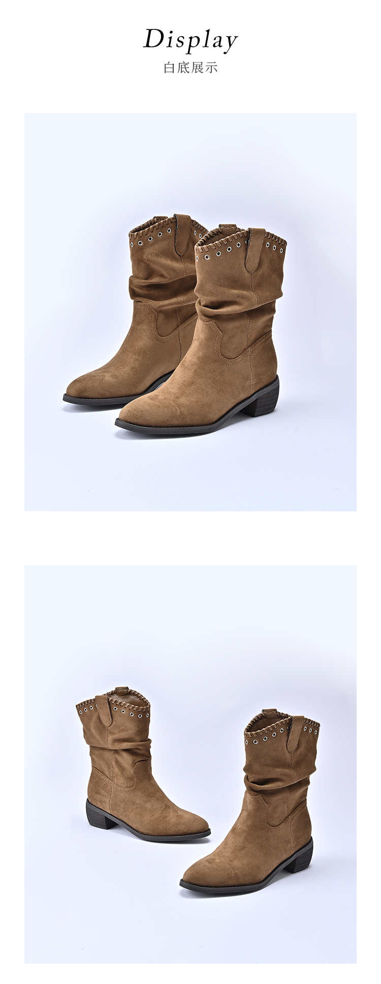 经典鲨2025年冬季专柜新款尖头中粗跟褶皱堆堆靴短筒靴KW192-558011