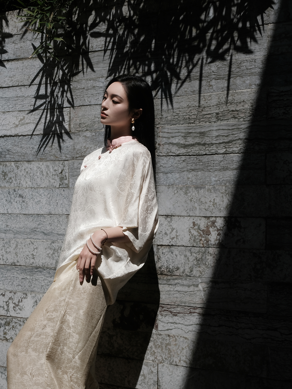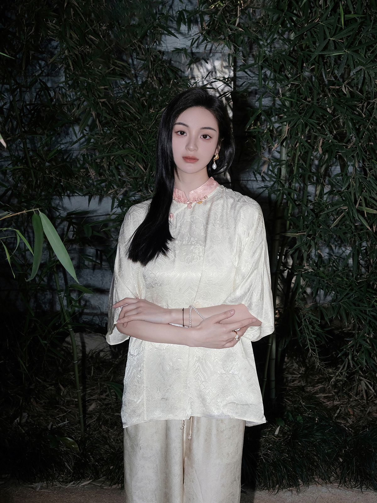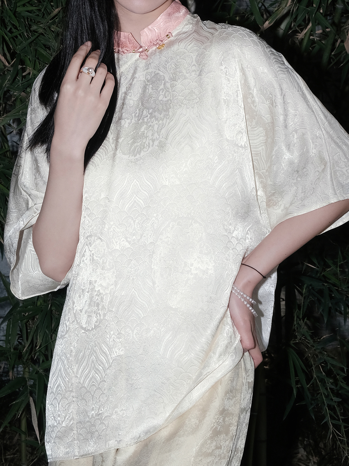 盛唐牡丹 | 真丝绸缎圆领上衣