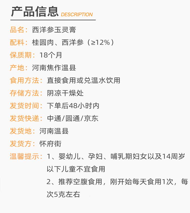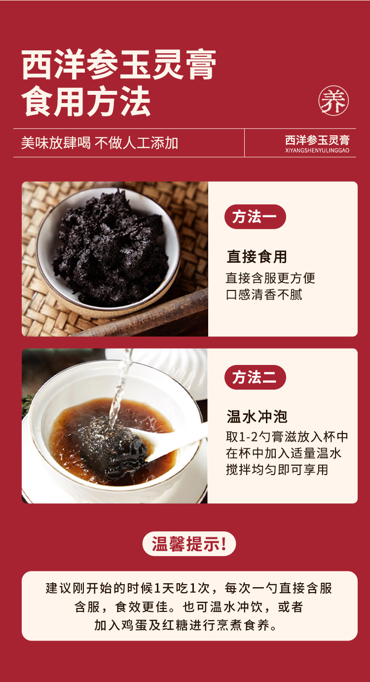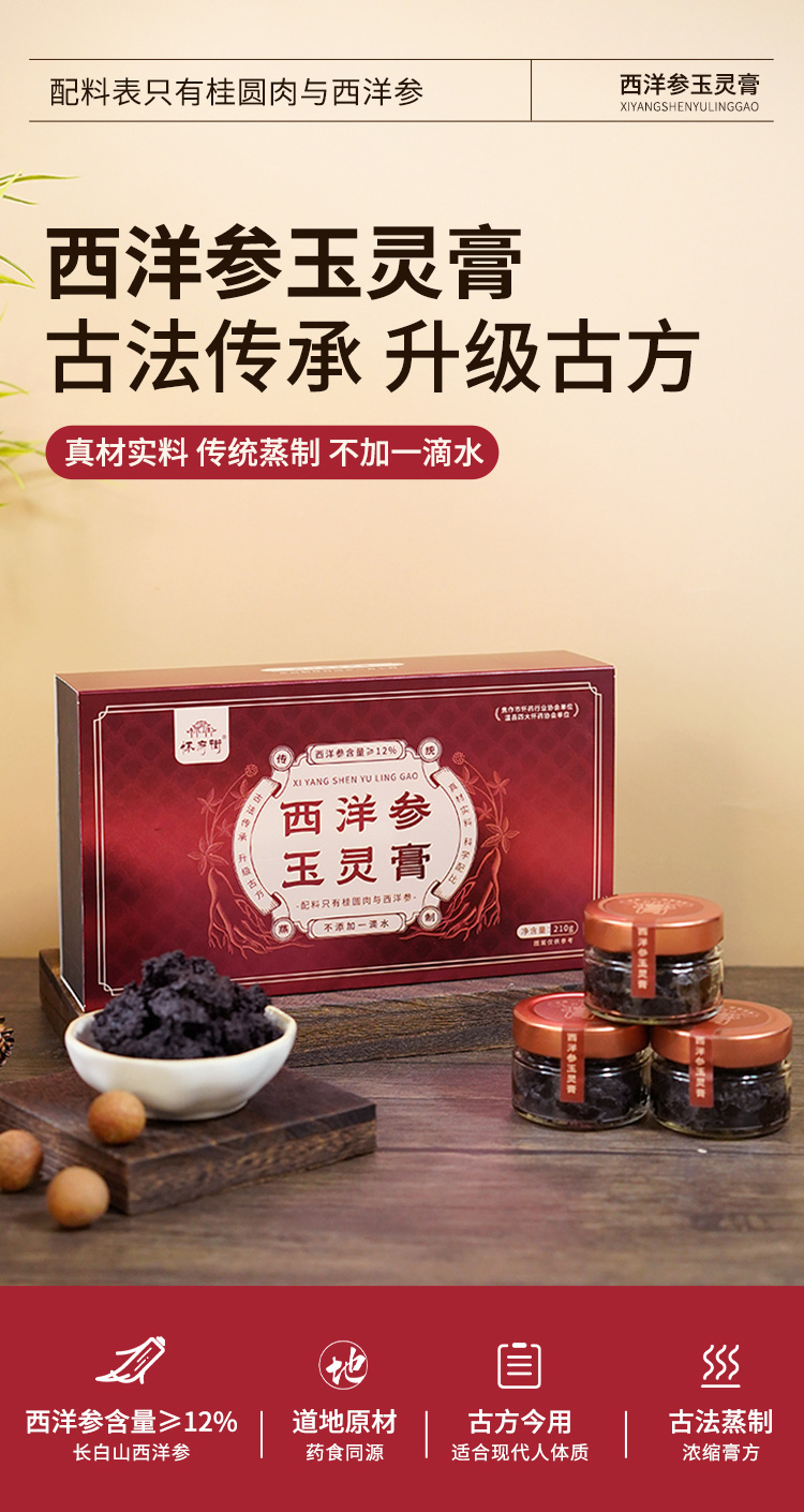 【买2瓶 赠地黄抱枣1盒】怀府街 西洋参玉灵膏 210g/盒【70g*3瓶】