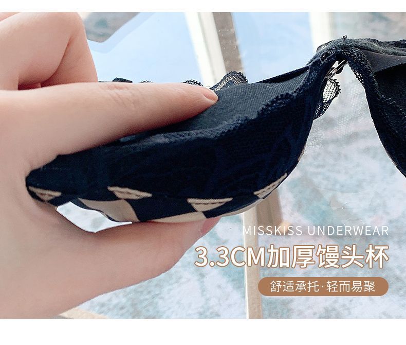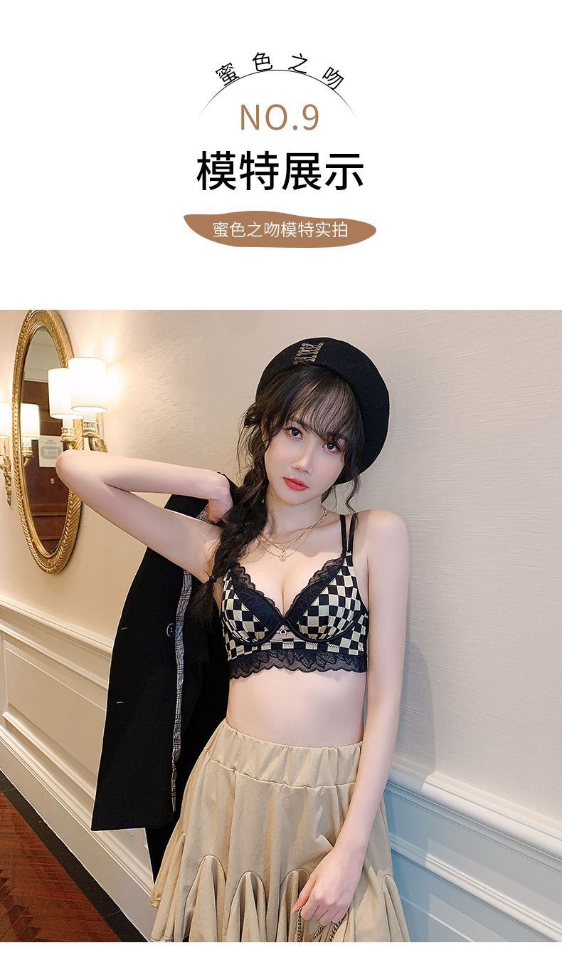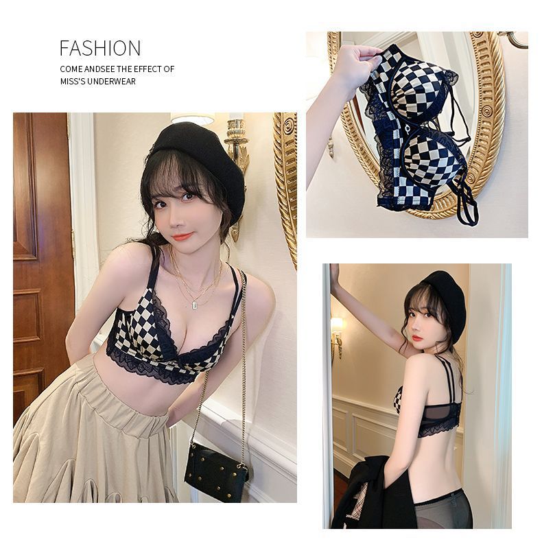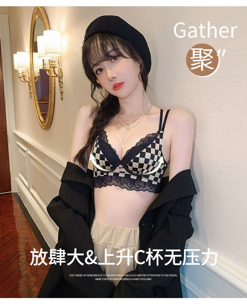 【专业聚拢,纯欲格子无钢圈内衣】告别空杯烦恼“舒适贴合” 3.3CM加厚馒头杯,双重防滑不跑杯,少女上镜显大文胸aa杯加厚胸罩套QQ