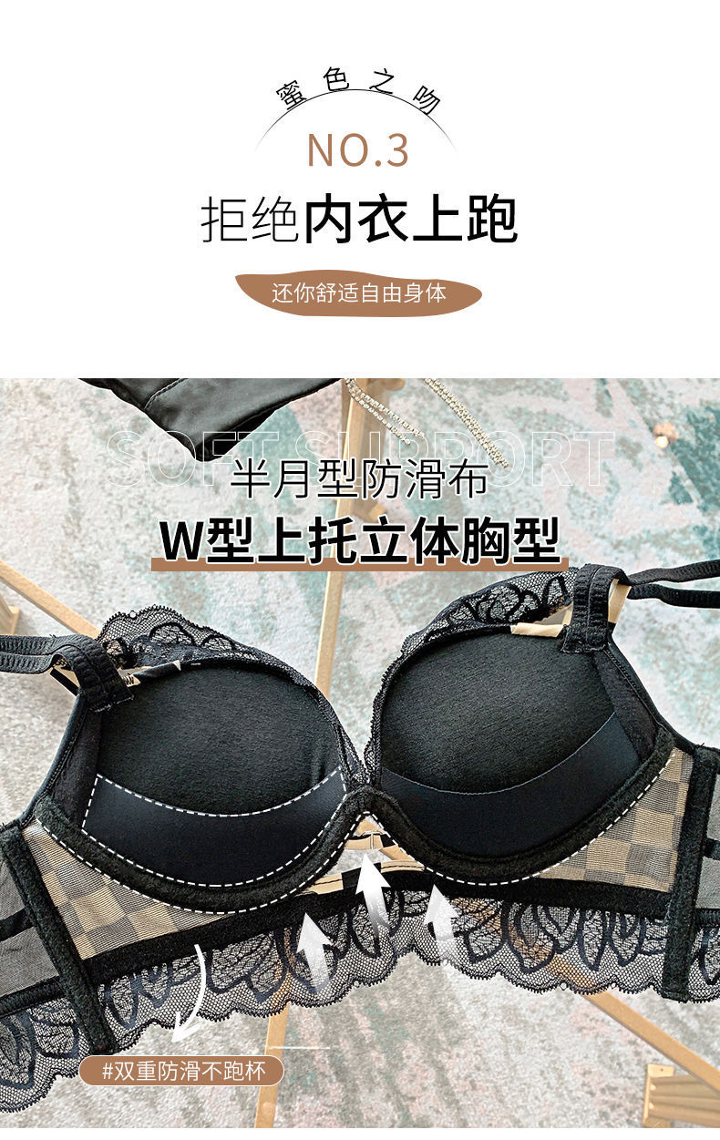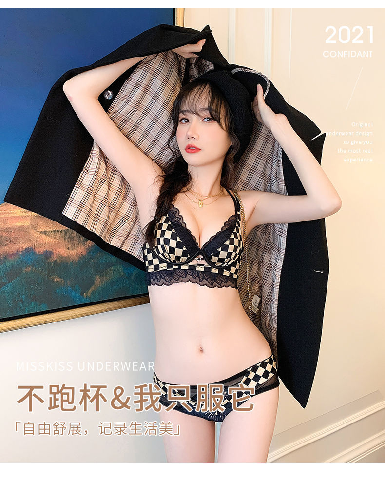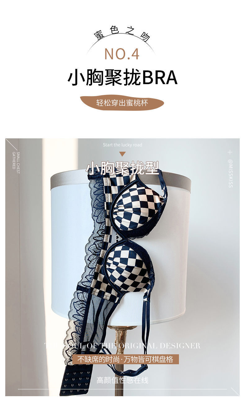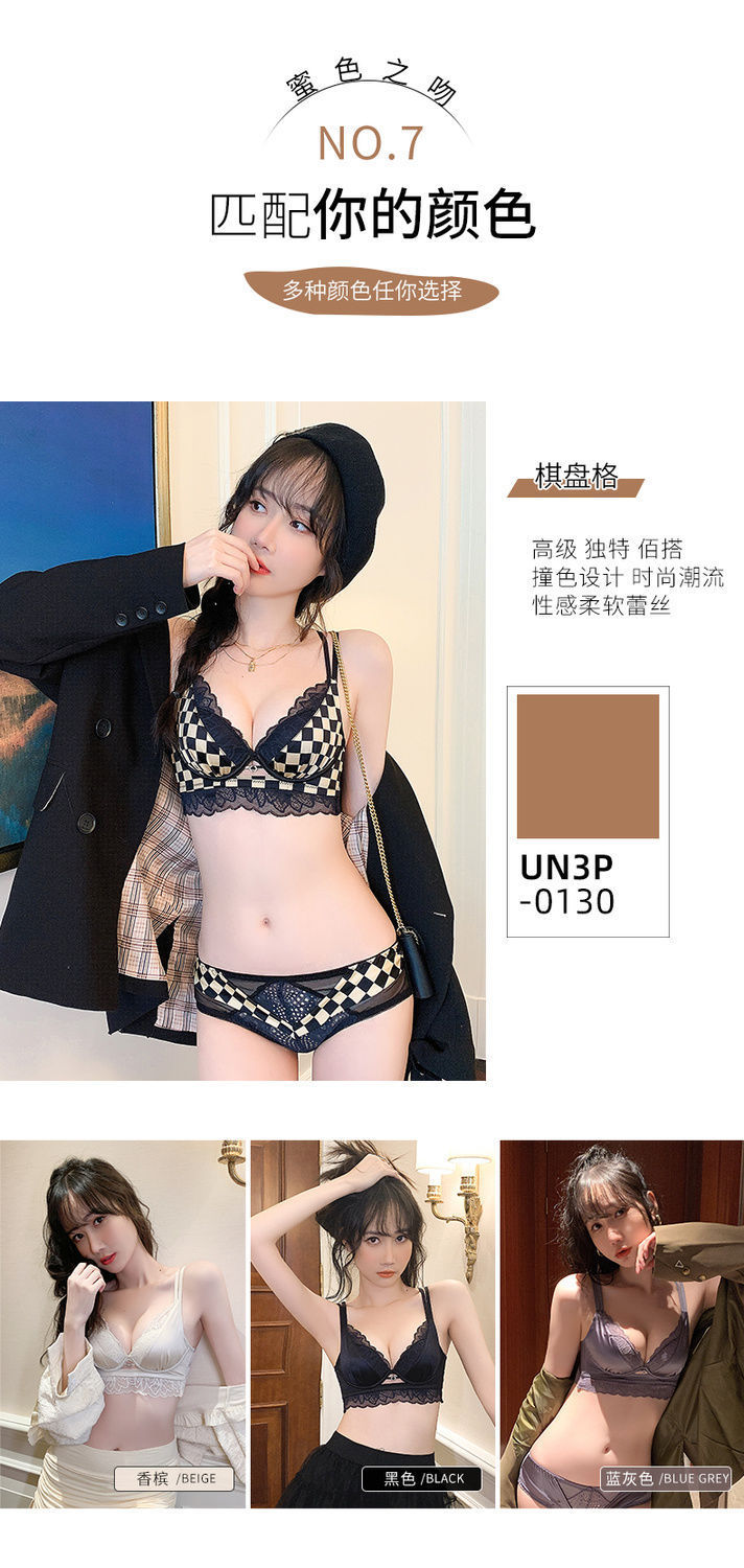 【专业聚拢,纯欲格子无钢圈内衣】告别空杯烦恼“舒适贴合” 3.3CM加厚馒头杯,双重防滑不跑杯,少女上镜显大文胸aa杯加厚胸罩套QQ