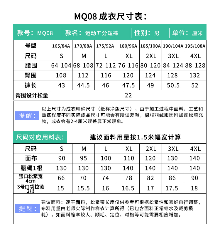 裁缝学苑MQ08新款运动男士短裤夏季跑步速干五分裤子纸样服装打板