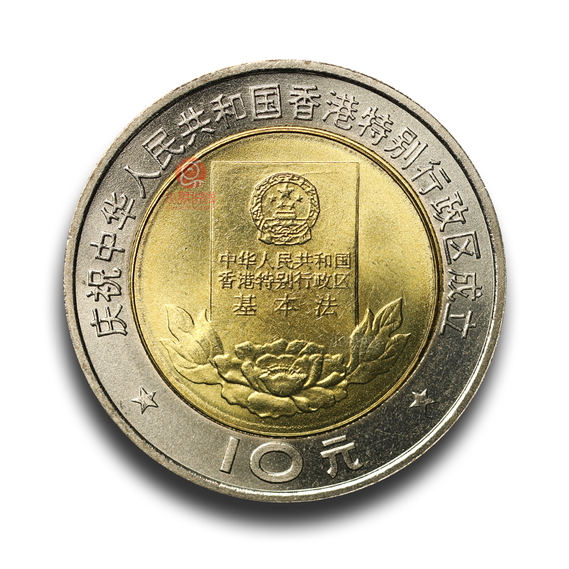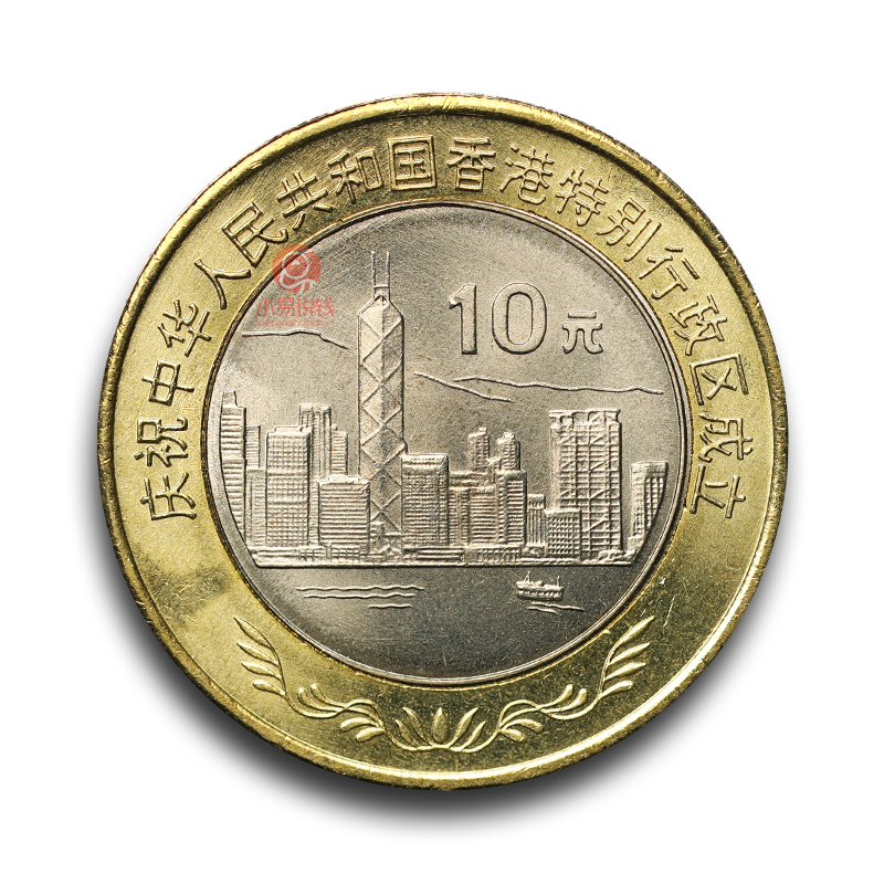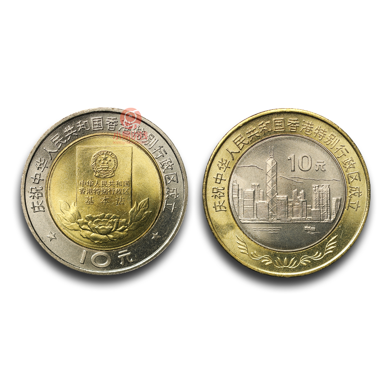 香港回归纪念币发行于1997年,一套2枚,面值均为10元,发行量2000万套。
