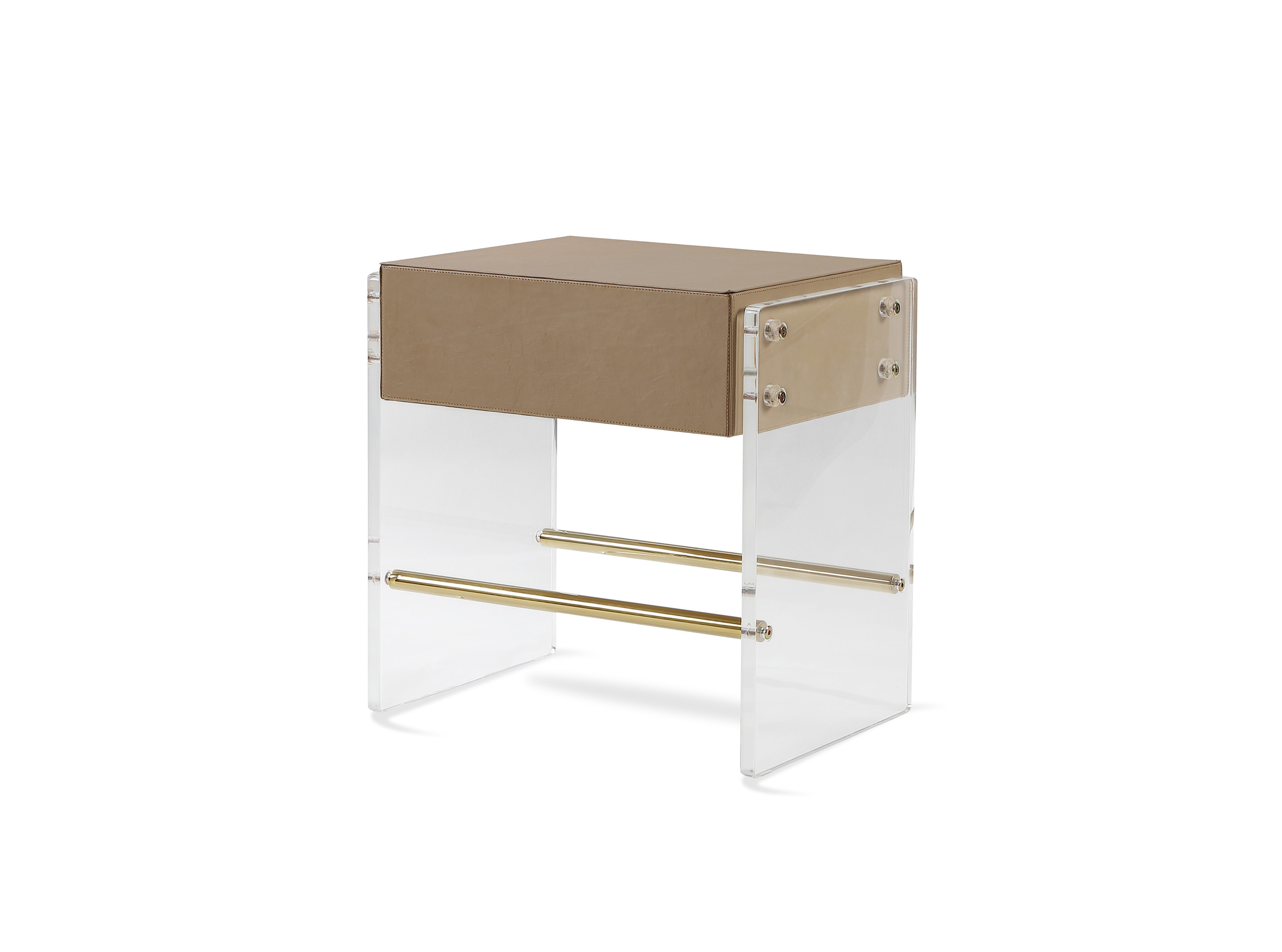 主材:牛皮邦迪褐+哑克力脚+香港金 不锈钢管