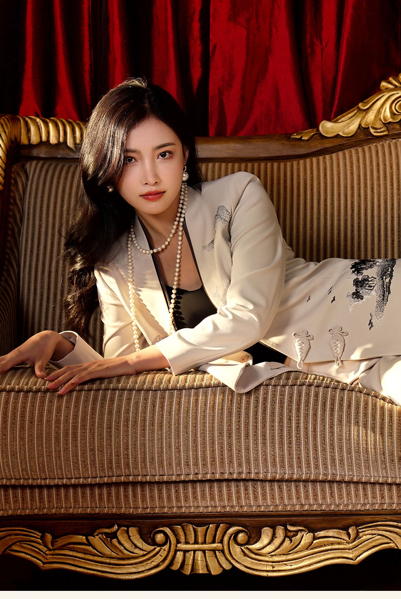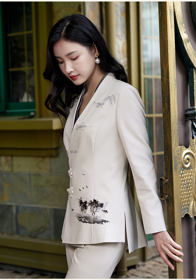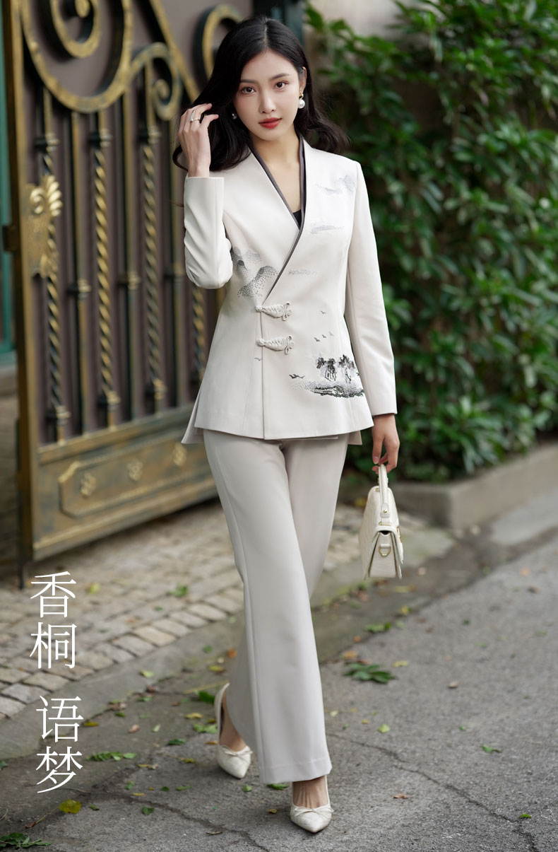 逸红颜香桐2025春季新款西装外套女时尚套装两件套短外套V领印花