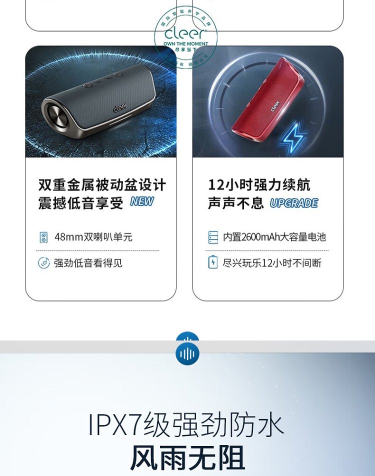 cleer 【任贤齐代言】STAGE智能蓝牙音箱户外便携式防水无线音响家用派对低音炮圣诞新年礼物 钛金灰
