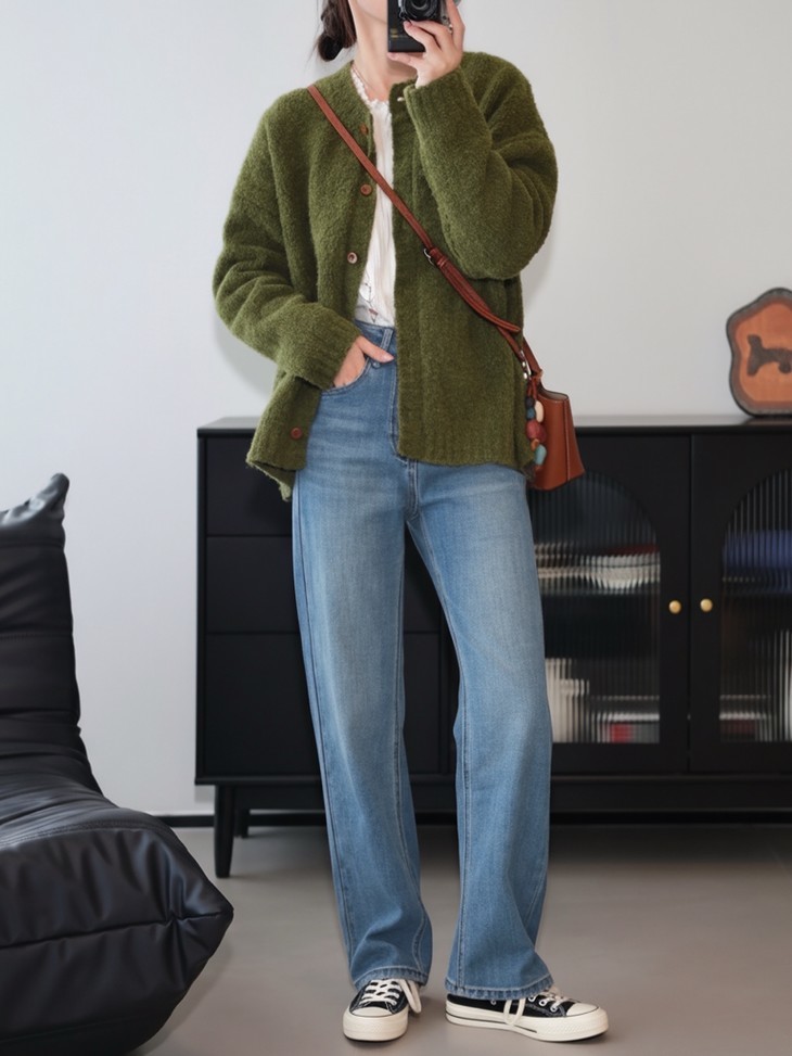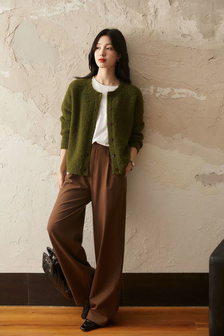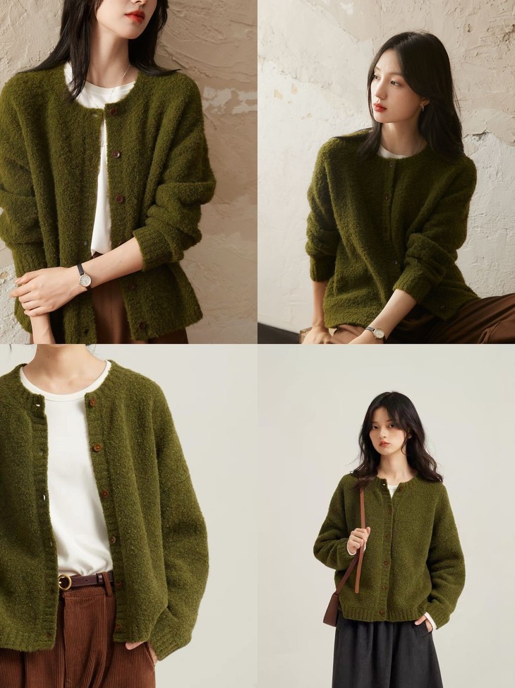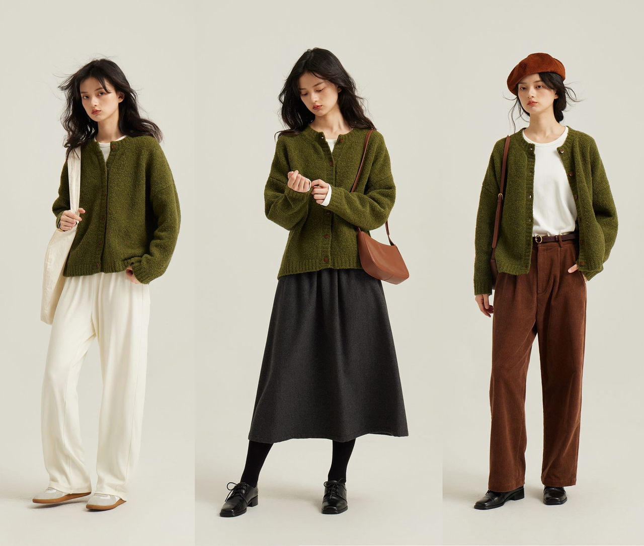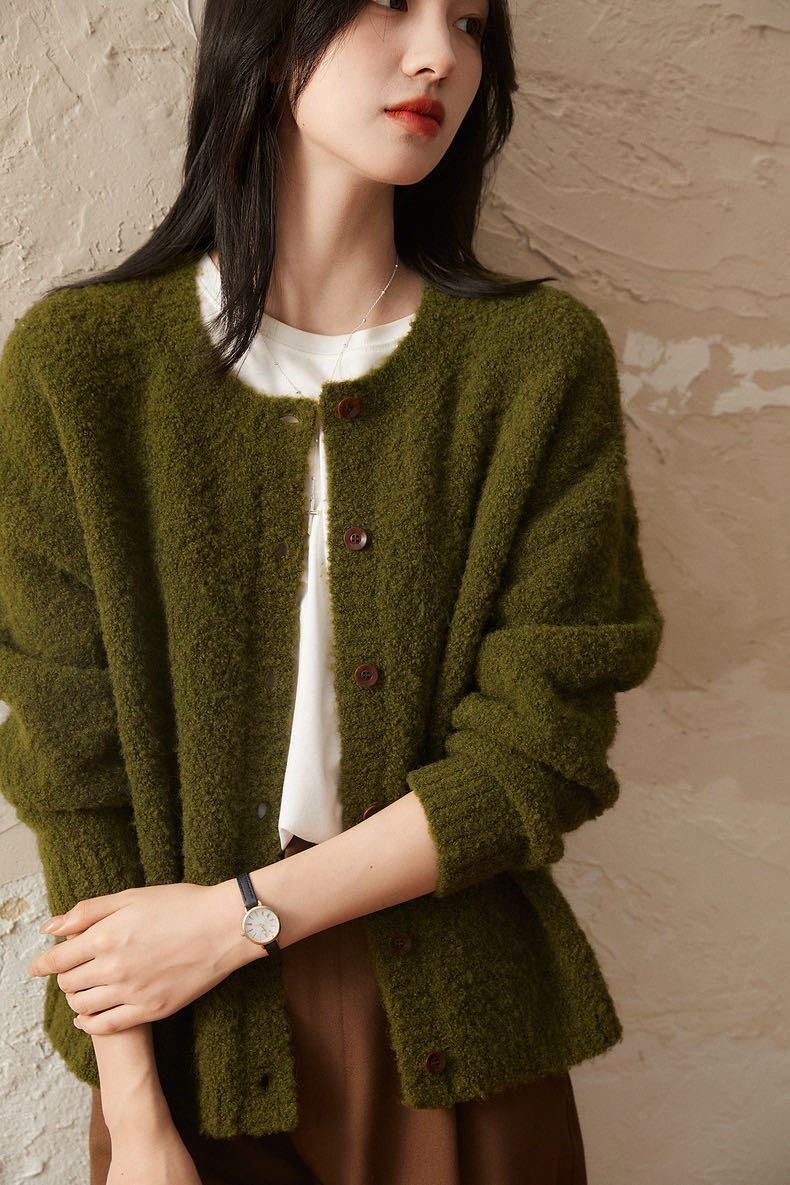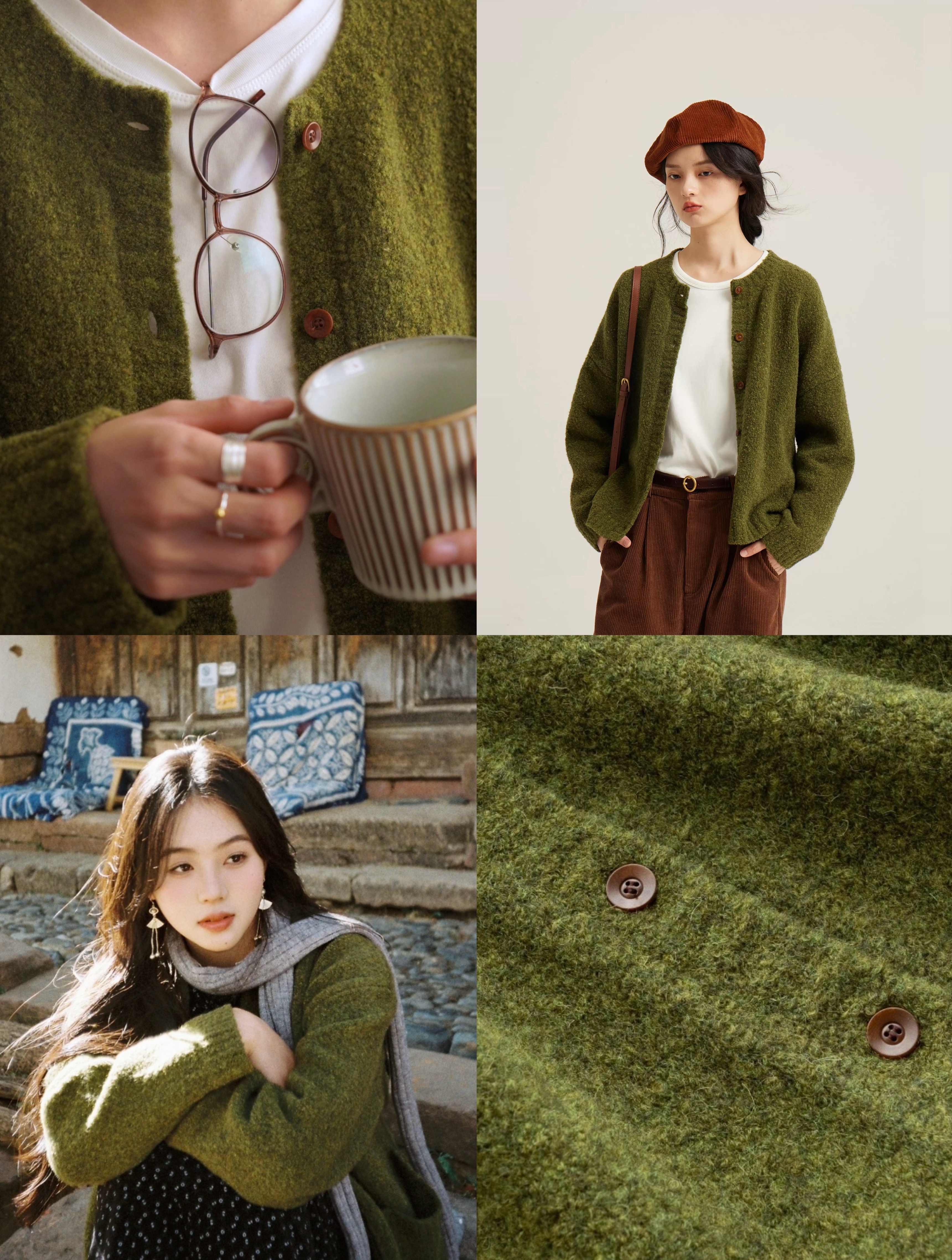 就像我今天推荐的苔藓绿开衫,色调复古浓郁,不张扬却格外高级耐看。