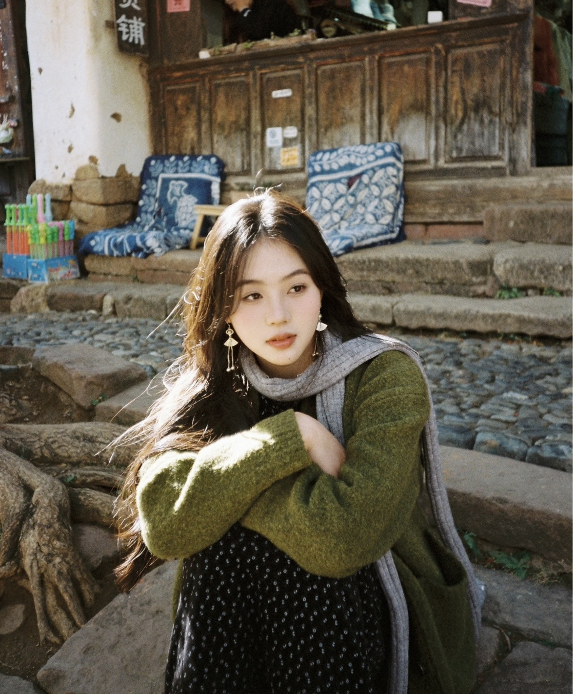 苔绿色本身就带有一点自然气息,既显白又不挑肤色,在阳光下泛着柔和的暖调,像是秋天树林的影子。