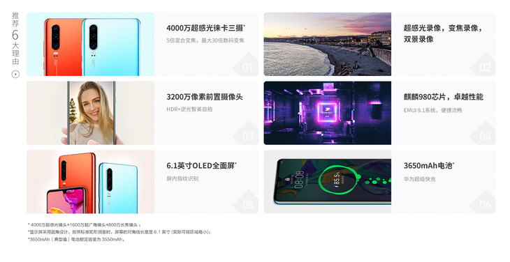 【华为4G】HUWEI P30 麒麟980 超感光徕卡三摄 屏内指纹 双景录像