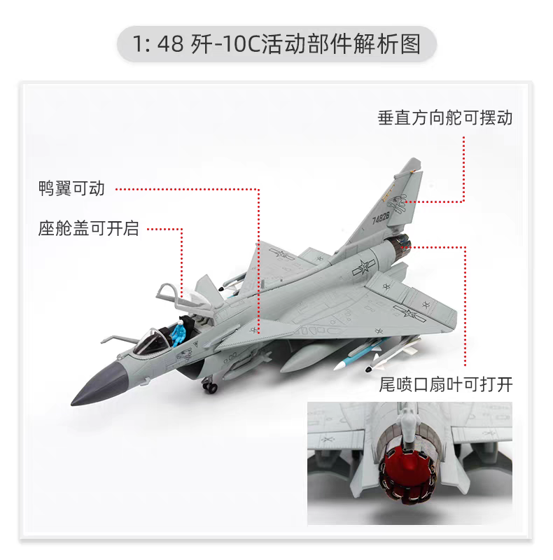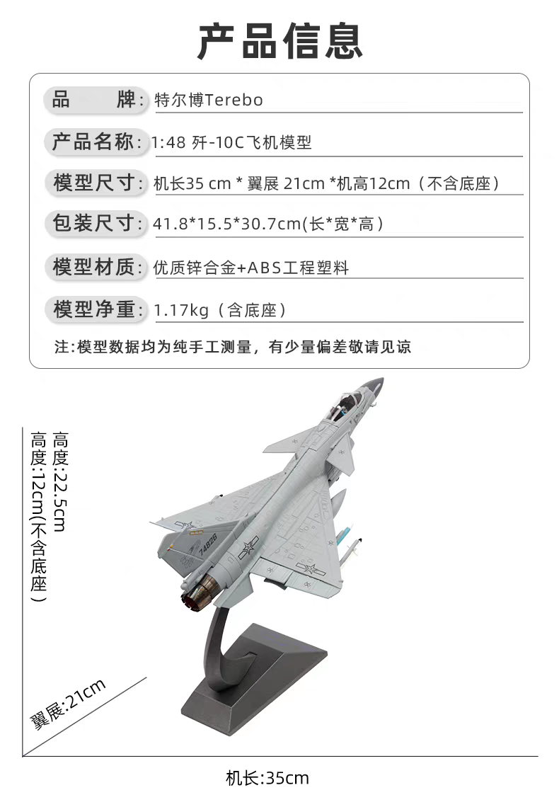 FXQ【中航工业官方正品 长春航展、九三阅兵纪念品-新品重磅】特尔博 1:48歼10C云岭红鹰低可视涂装歼-10C飞机模型合金战斗机