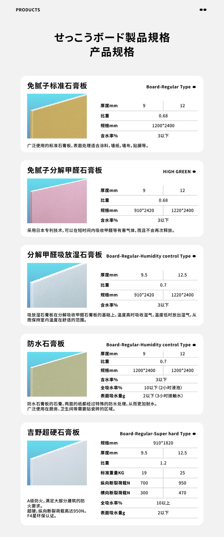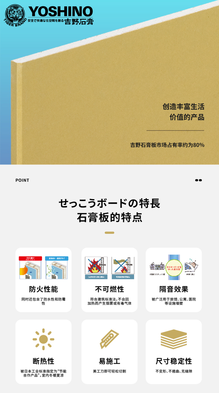 日本进口吉野GL工法防火保温9.5mm石膏板防水石膏板