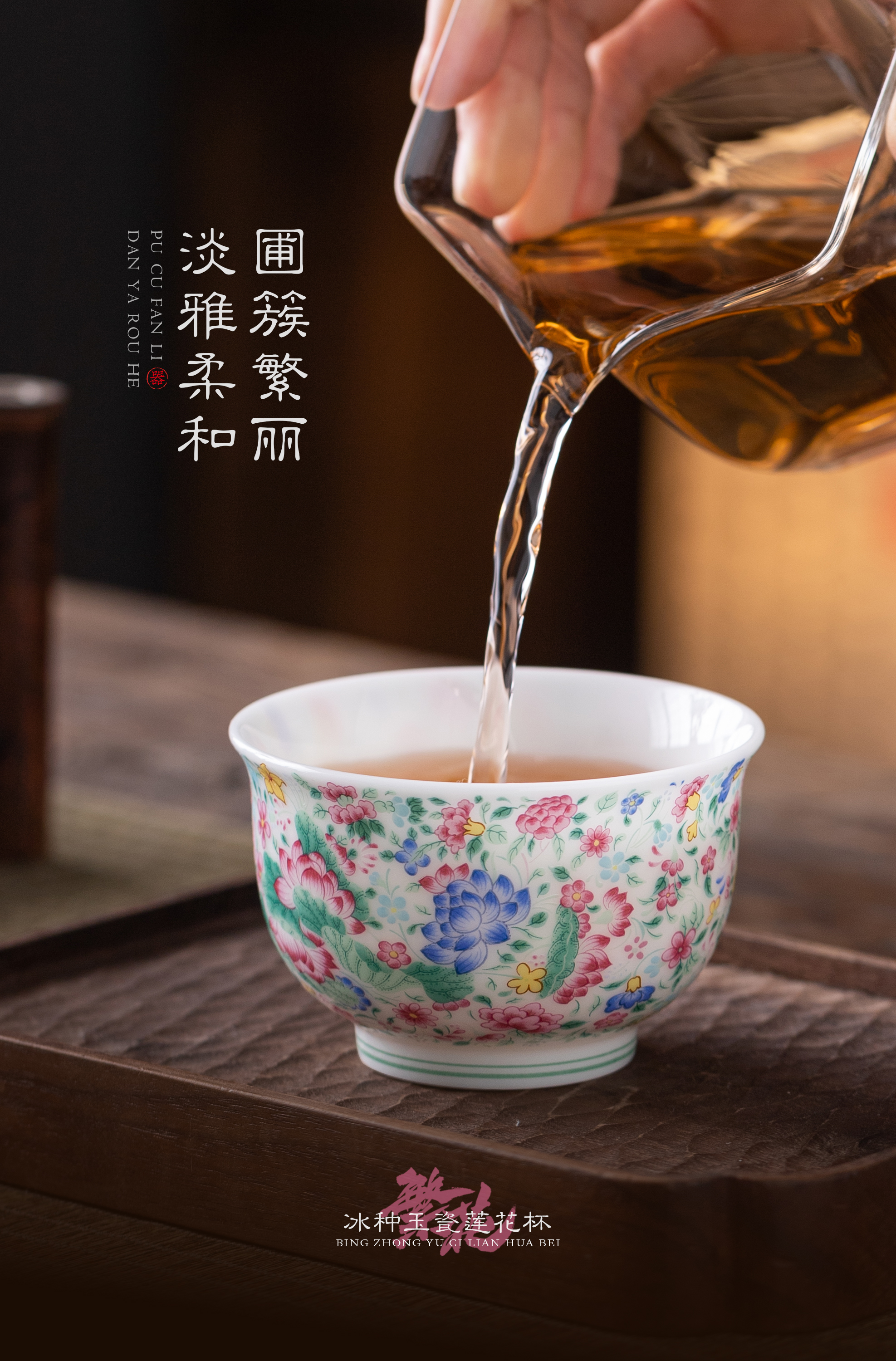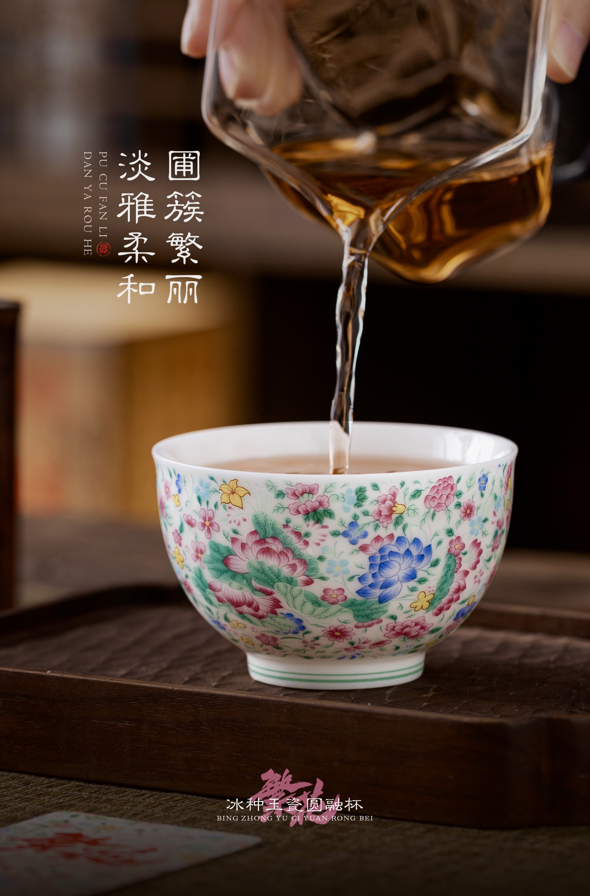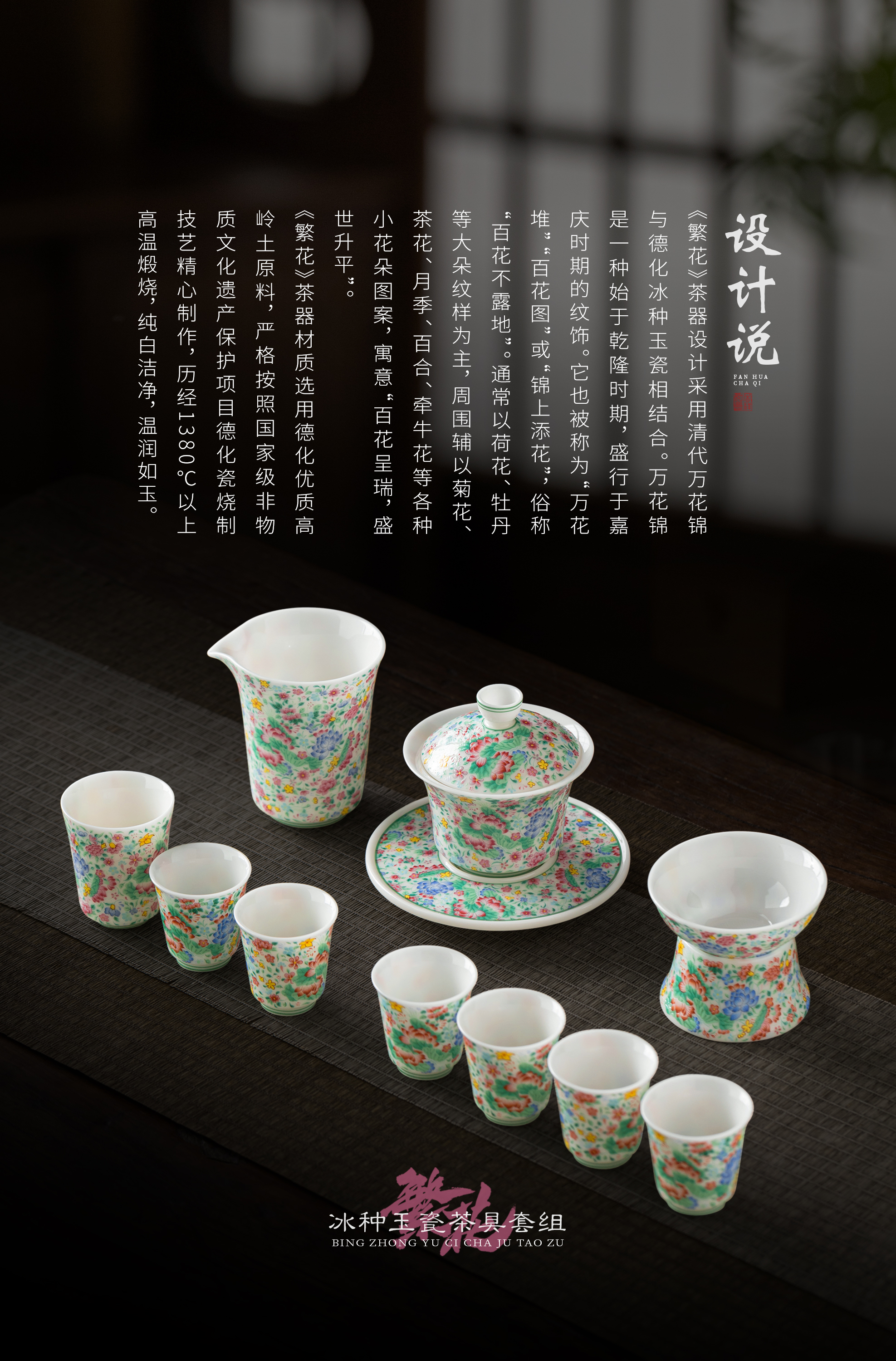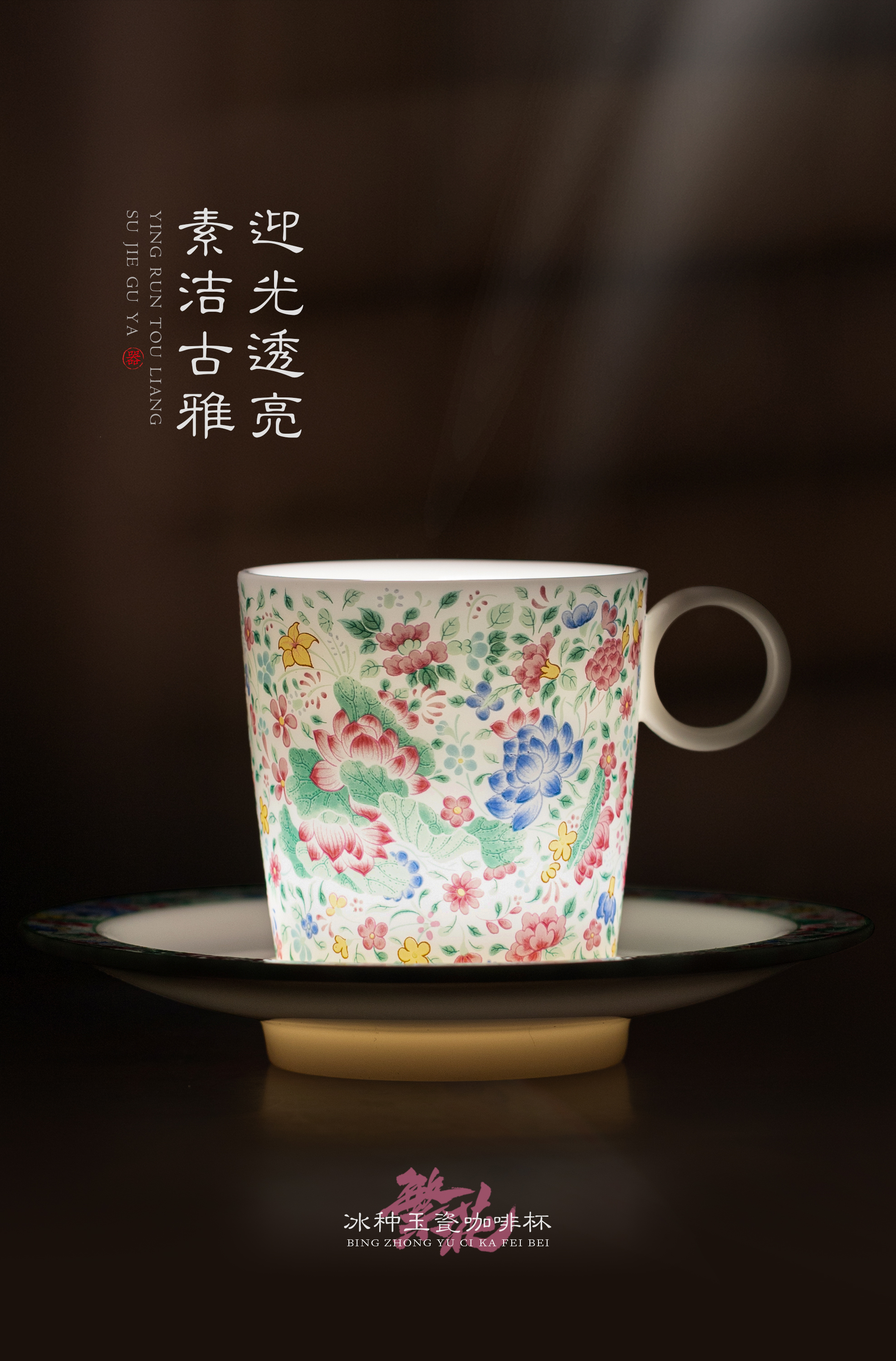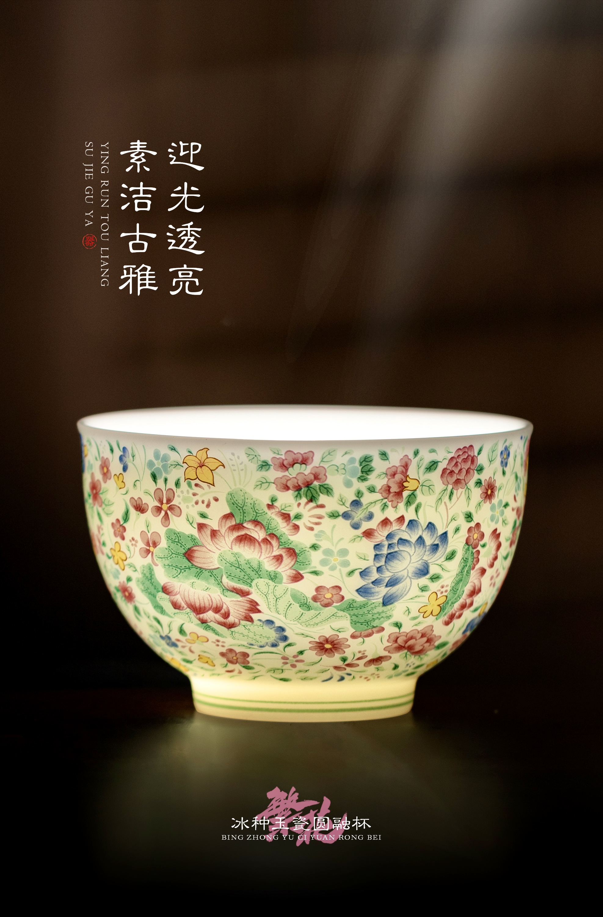 【万花呈瑞 盛世升平】繁花冰种玉瓷盖碗套组/茶具套组/圆融杯/莲花杯主人杯/咖啡杯 徐建勇大师签章,繁花争艳 推感立体 迎光透亮,精美包装 gao端豪礼