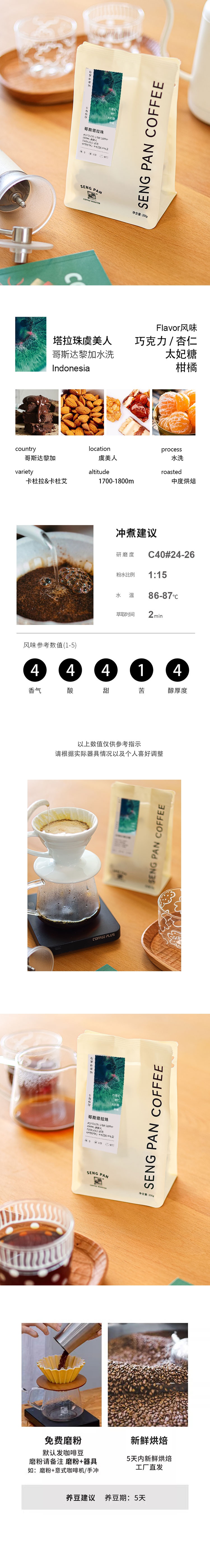 哥斯达黎加塔拉珠虞美人庄园水洗手冲咖啡豆可磨粉中烘 200克