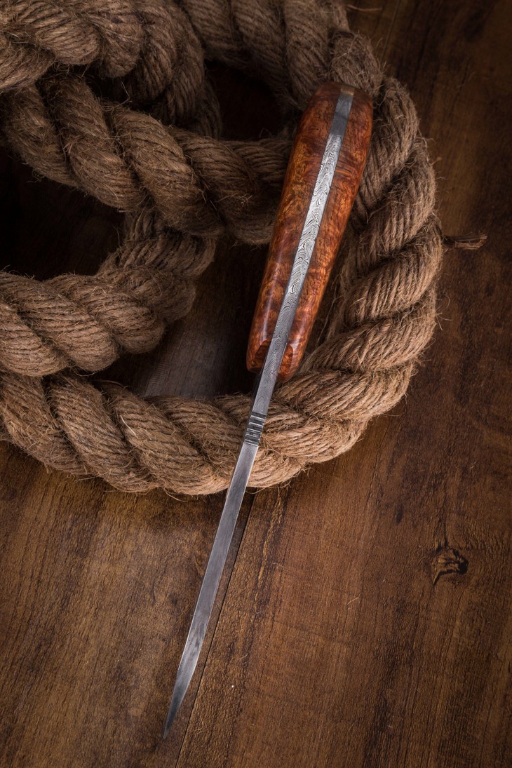 对于直刀而言,选料、制作、设计良好的握柄,会让你感到人刀合一、安全且易于发力,使用起来更得心应手,变成手臂的延伸;反之,一个设计不佳的刀柄则可能难以施展出一把刀的力量,甚至危险一点的,还可能会脱手掉刀。