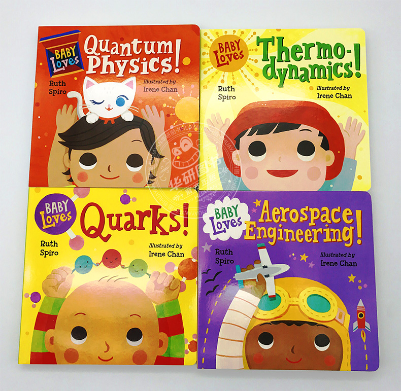 美国儿童作家Ruth Spiro笔下的Baby Loves系列绘本深受孩子们的喜爱,而本套书属于“宝宝爱科学”系列,包含Baby Loves Thermodynamics!《宝宝爱热力学》、Baby Loves Quantum Physics!《宝宝爱量子物理学》、Baby Loves Aerospace Engineering!《宝宝爱航空航天工程》、Baby Loves Quarks!《宝宝爱微观物理》共4册。书中的语言简单易懂,全彩插图生动形象,有利于培养宝宝们的好奇心和对科学的简单认知。本套书为撕不烂的纸板书,适合3-6岁的孩子阅读,也可作亲子读物使用。