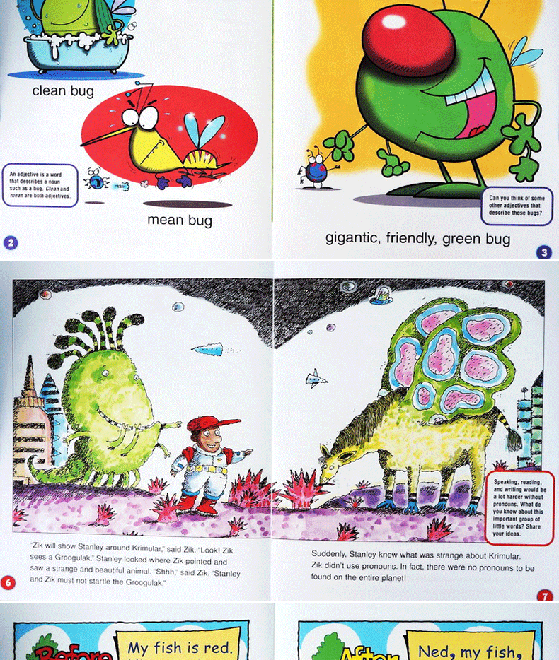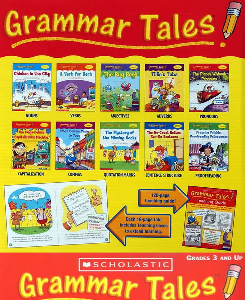 这套美国学乐出版社(Scholastic)出版的Grammar Tales,用有趣的10本图画故事书,10个超具吸引力的小故事,将呆板的语法概念轻松地带给学生们,例如:名词、动词、形容词、代名词、大写、逗号、引号、句子结构等10项基础语法点。随书附上的教学指导手册,内容配合各种读本的详尽教案和学习单,让爸爸妈妈们在带孩子用的时候更加得心应手。你会发现原来,学习语法也可以像阅读故事般这么有趣!