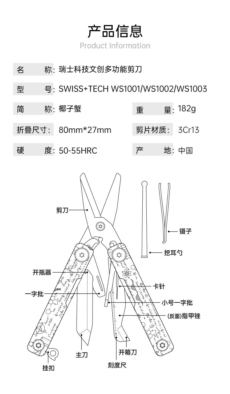 瑞士科技SWISS+TECH 12合1椰子蟹多功能剪刀-分销