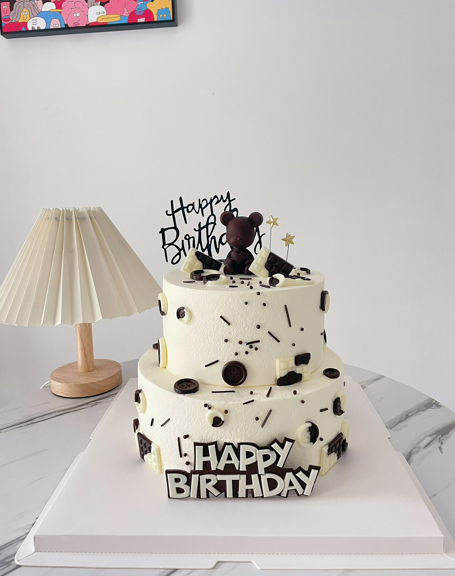 双层黑白小熊一鲜奶动物奶油蛋糕