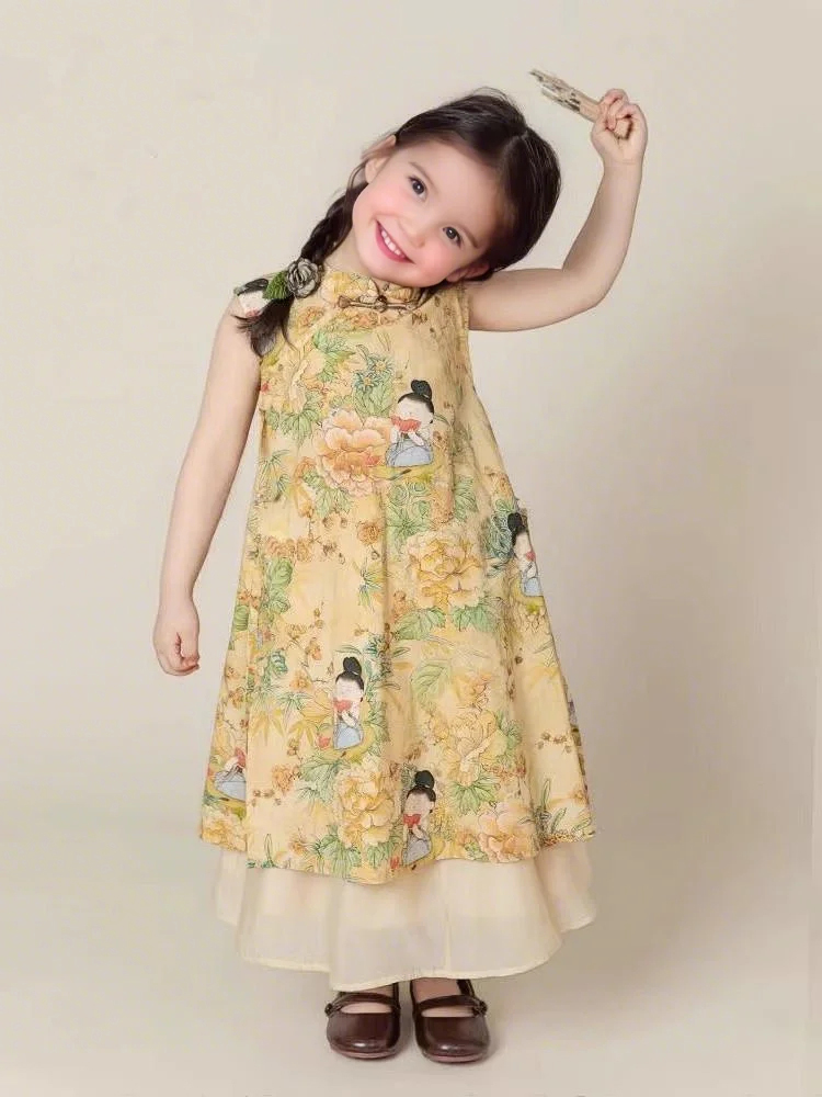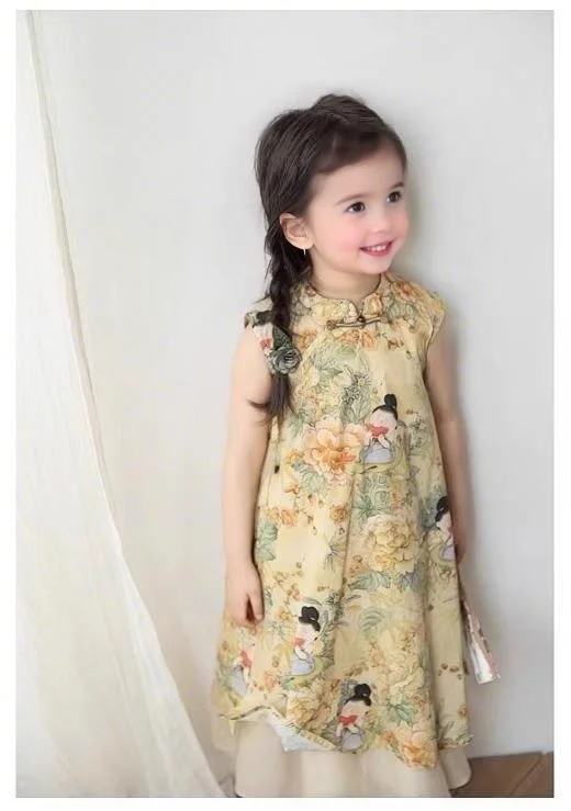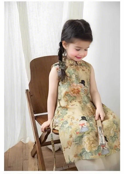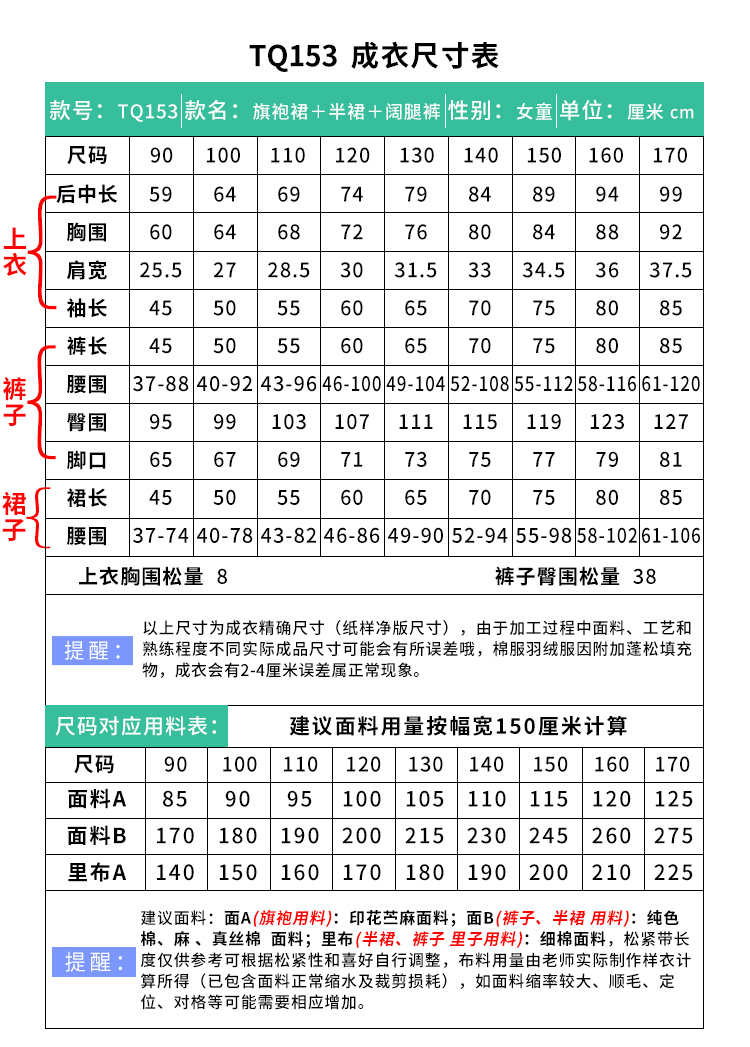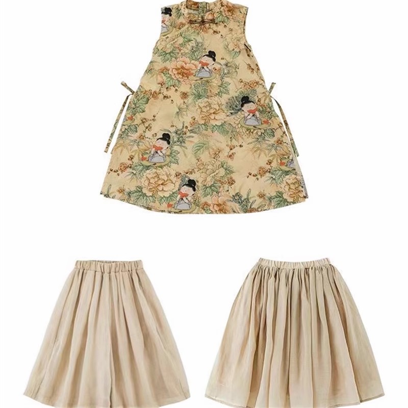 裁缝学苑TQ153女童新中式旗袍裙纸样儿童新款国风开叉上衣半身裙短裤样板