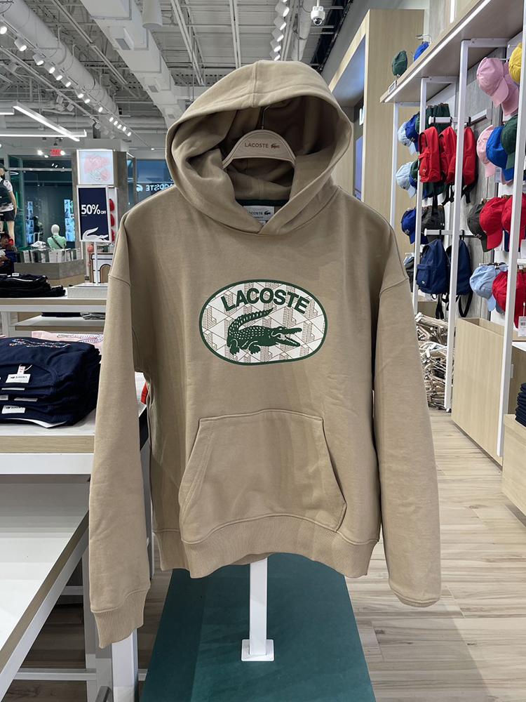 Lacoste/法国鳄鱼 男春秋纯棉宽松鳄鱼印花袋鼠兜连帽卫衣SH0067