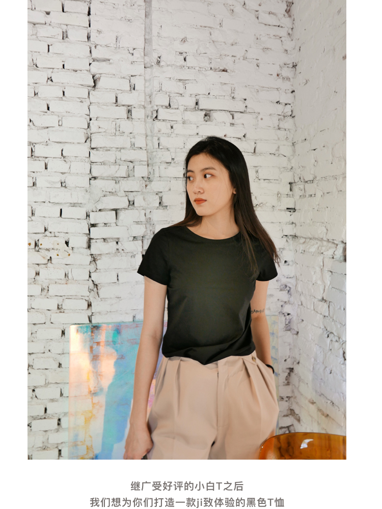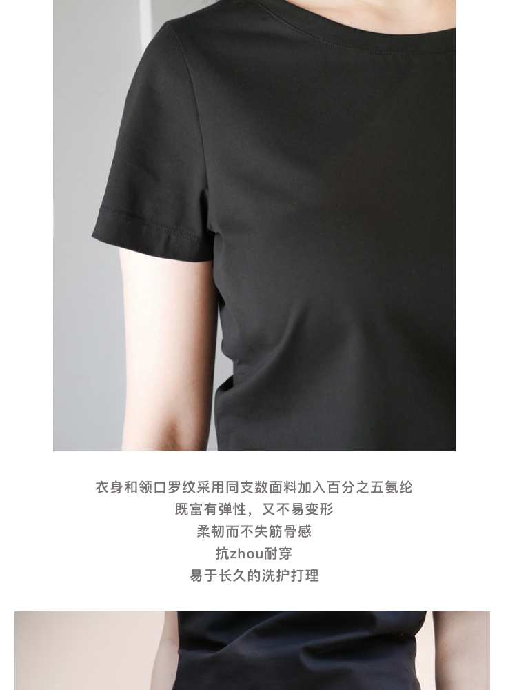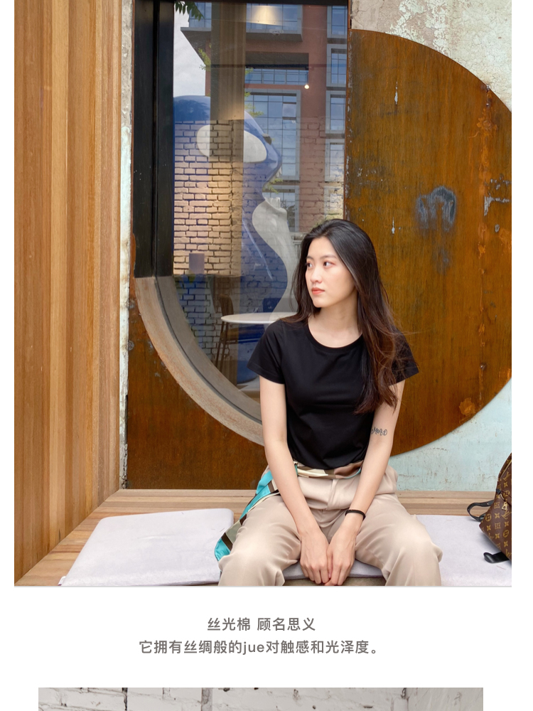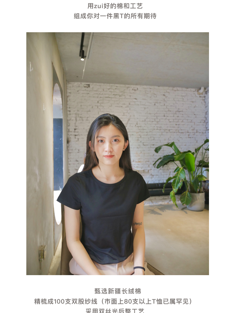 100支精纺新疆长绒棉双面丝光棉圆领黑色T恤纯棉