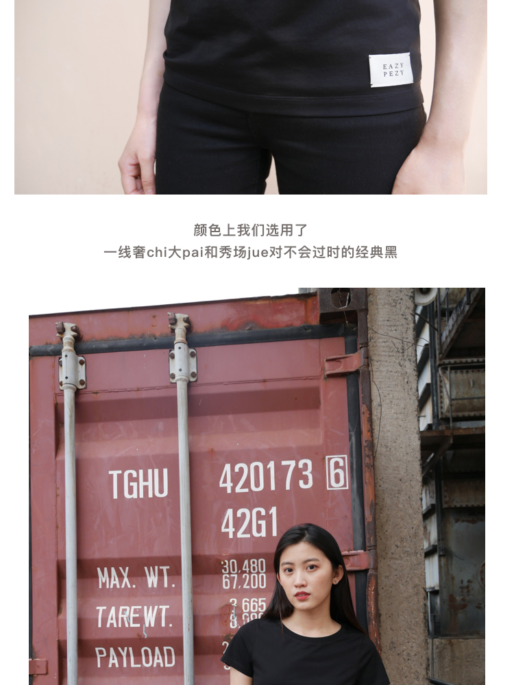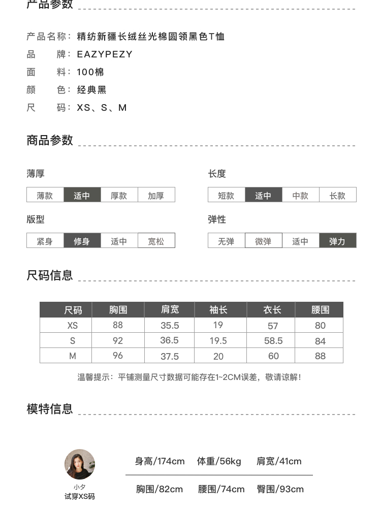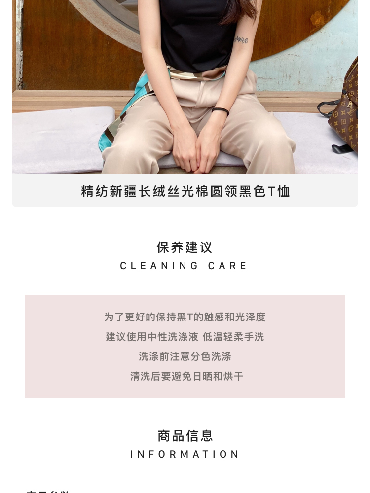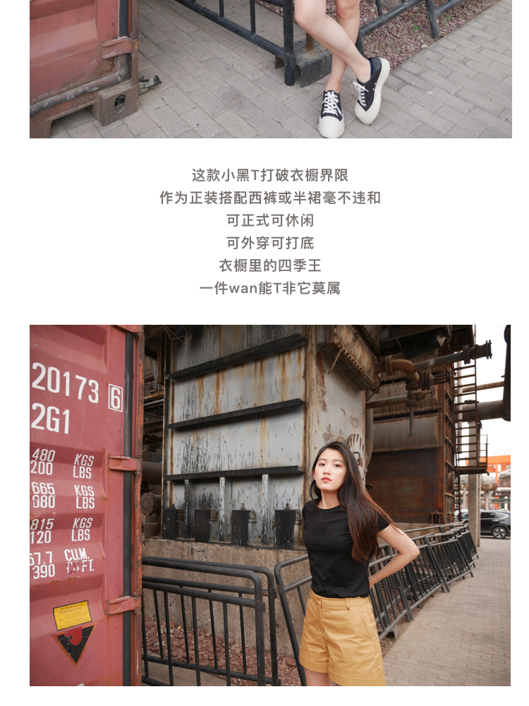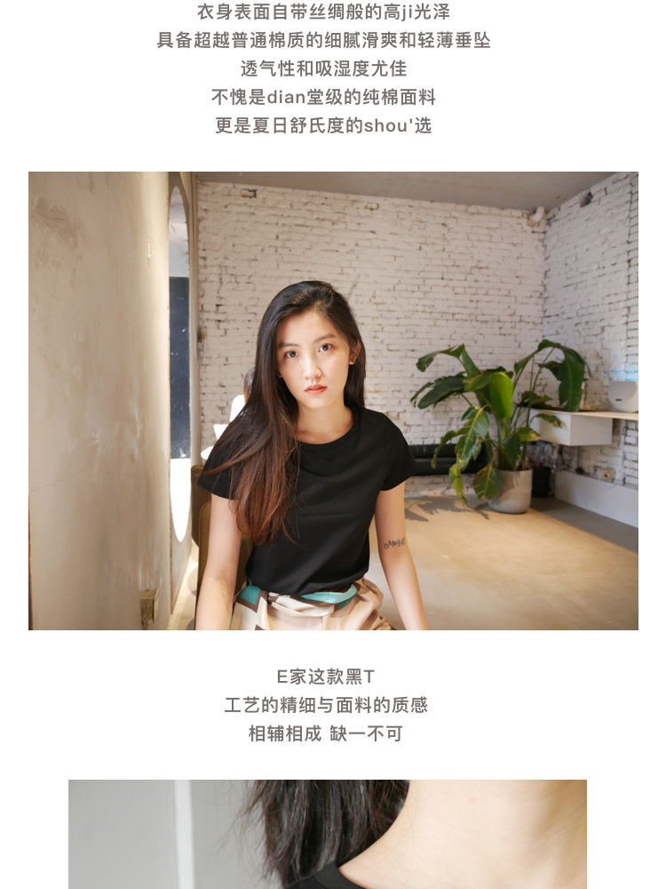 100支精纺新疆长绒棉双面丝光棉圆领黑色T恤纯棉