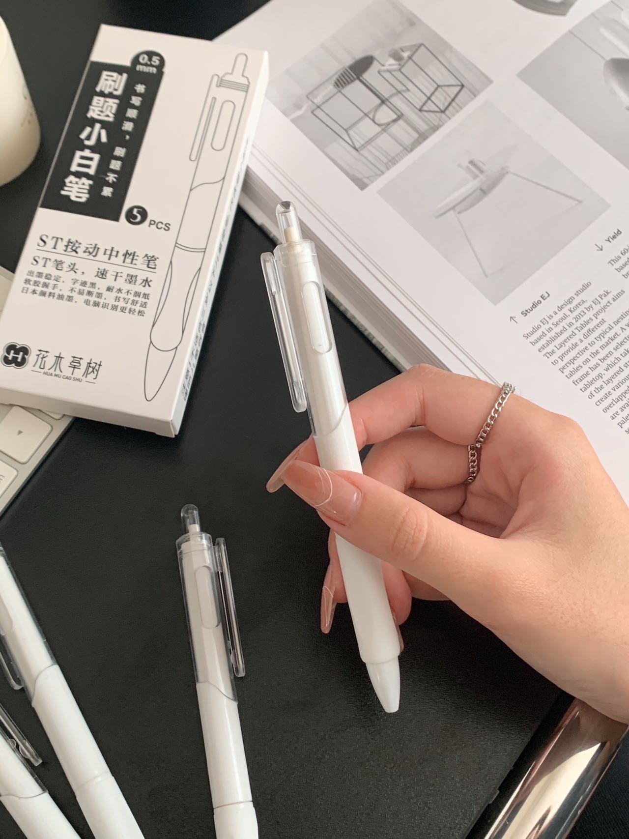 【家居百货】小白刷题笔专用ins日系高颜值速干按动中性笔黑笔ST笔尖顺滑笔芯