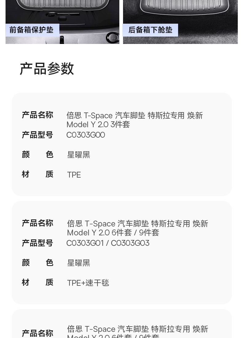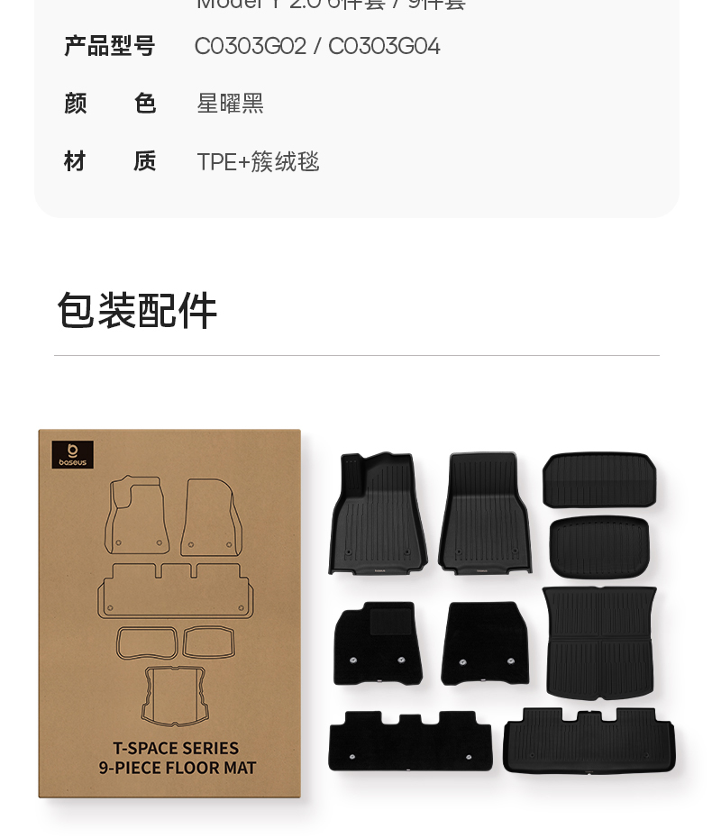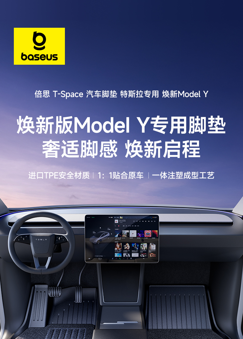 倍思 T-Space 汽车脚垫 特斯拉专用 焕新Model Y 2.0