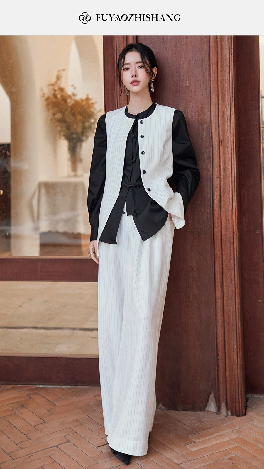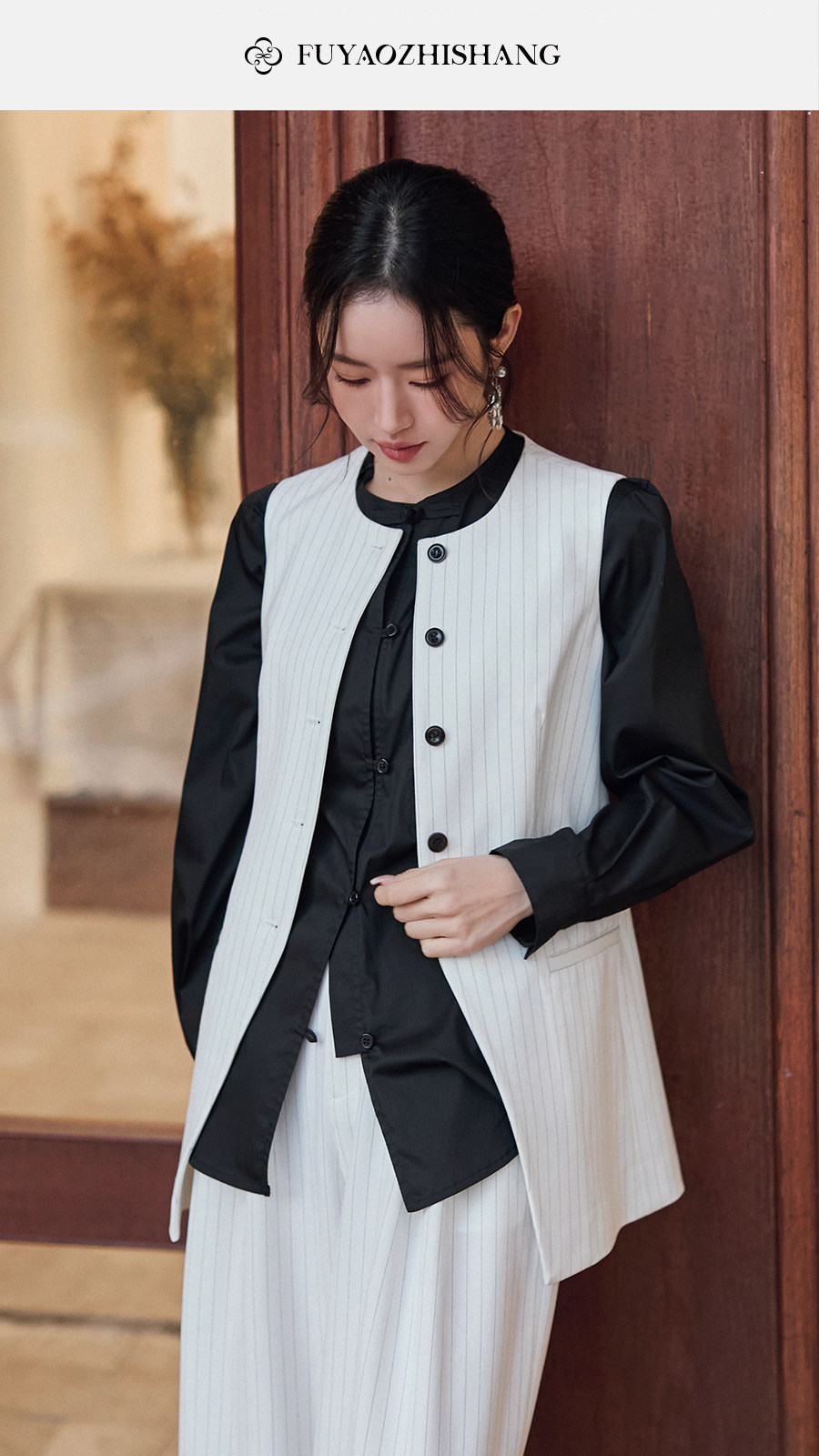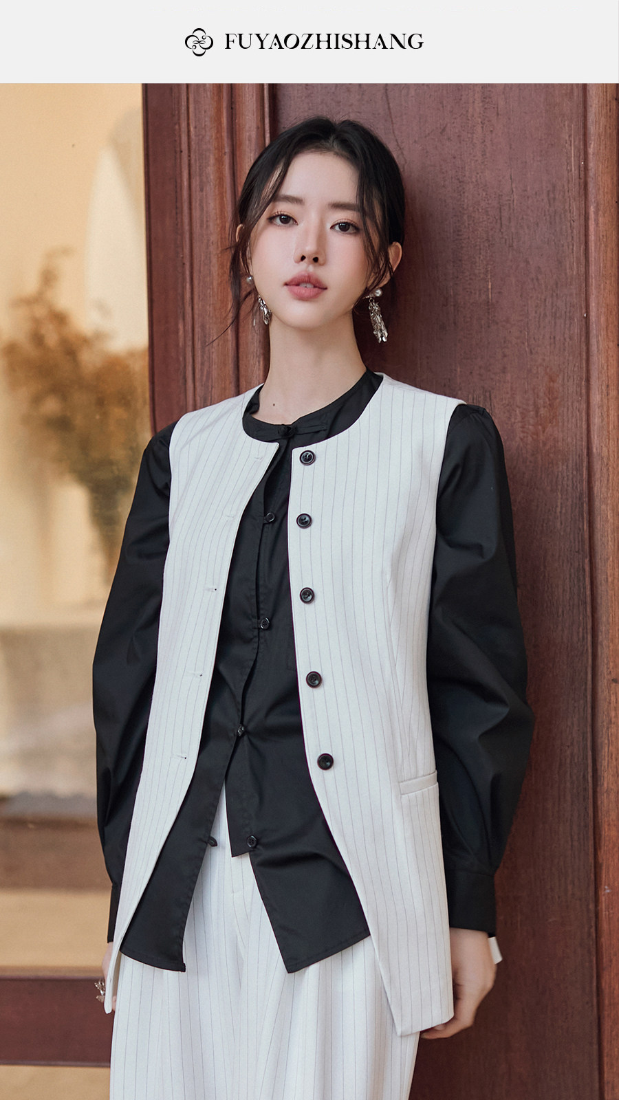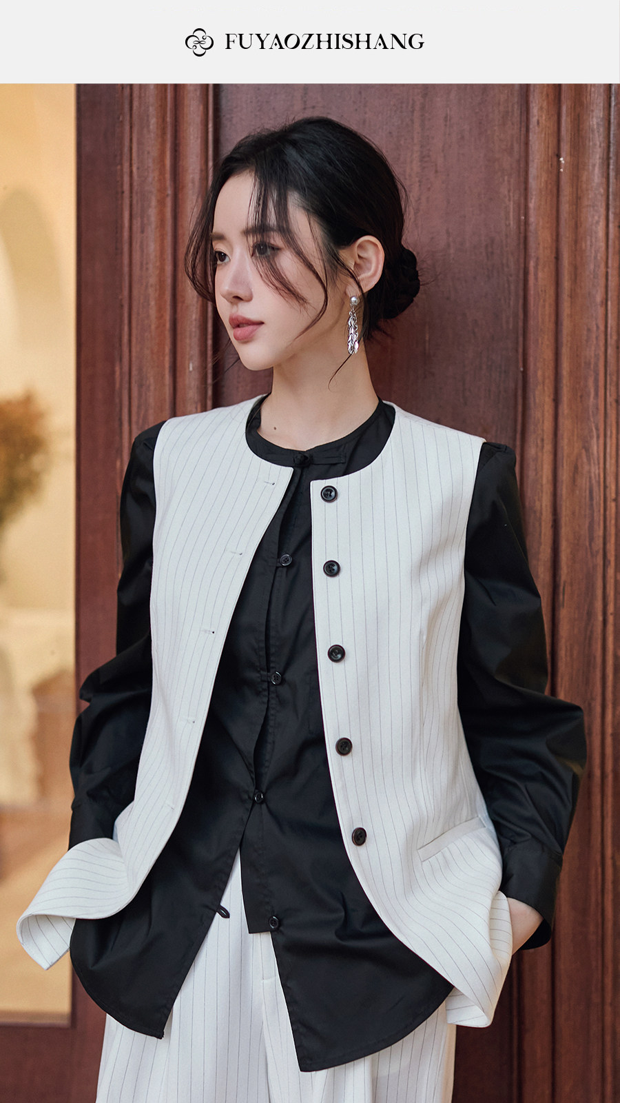 FUYAO扶摇直上 staycation老钱风白色西装外套女新中式西服套装夏