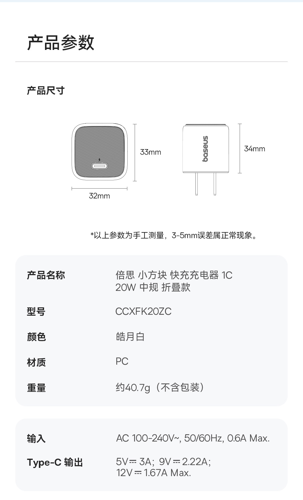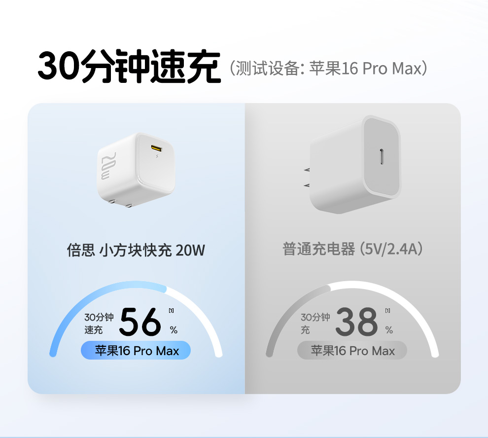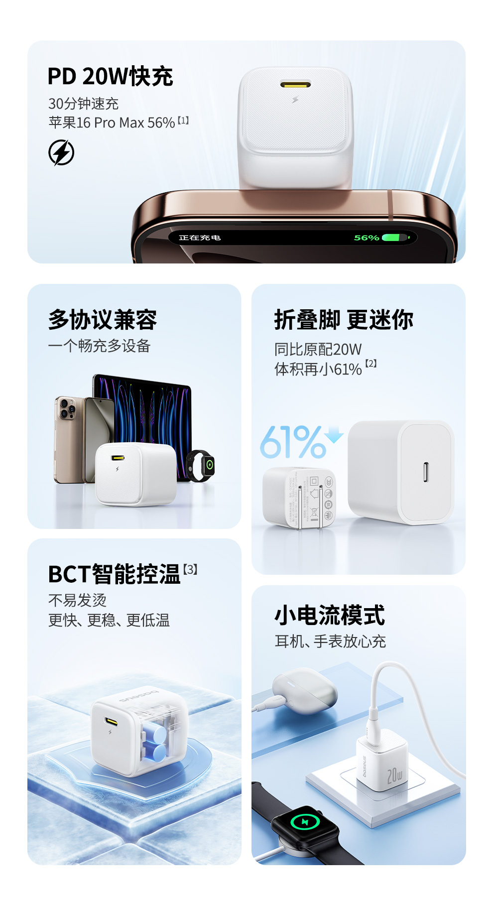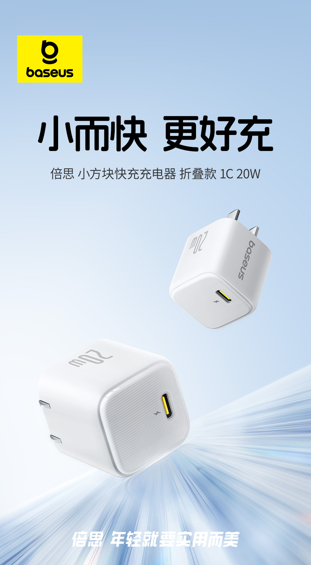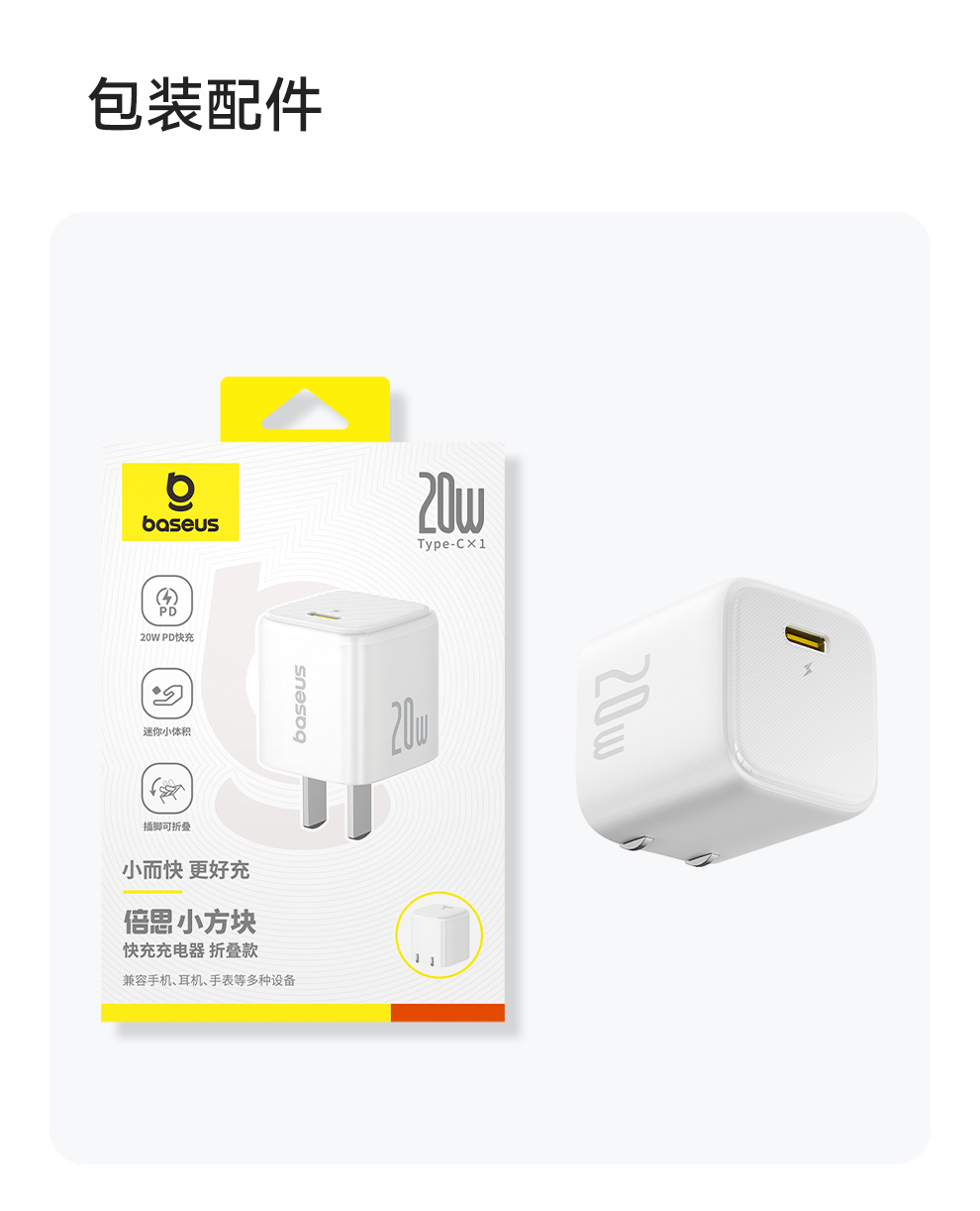【69元3件】倍思 小方块 快充充电器 1C 20W 折叠款