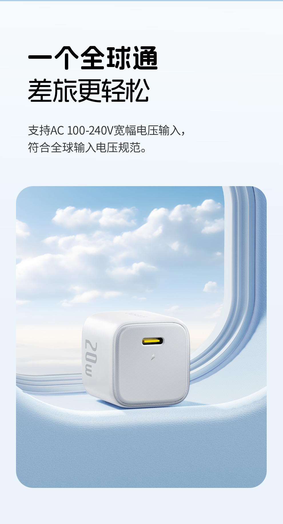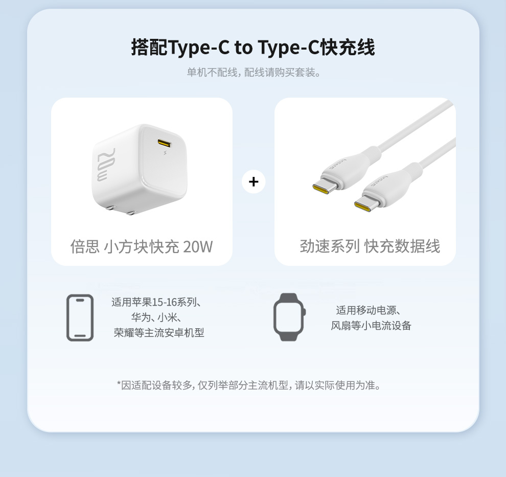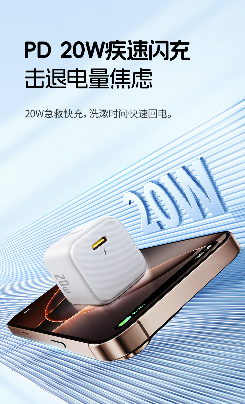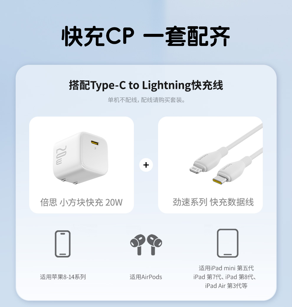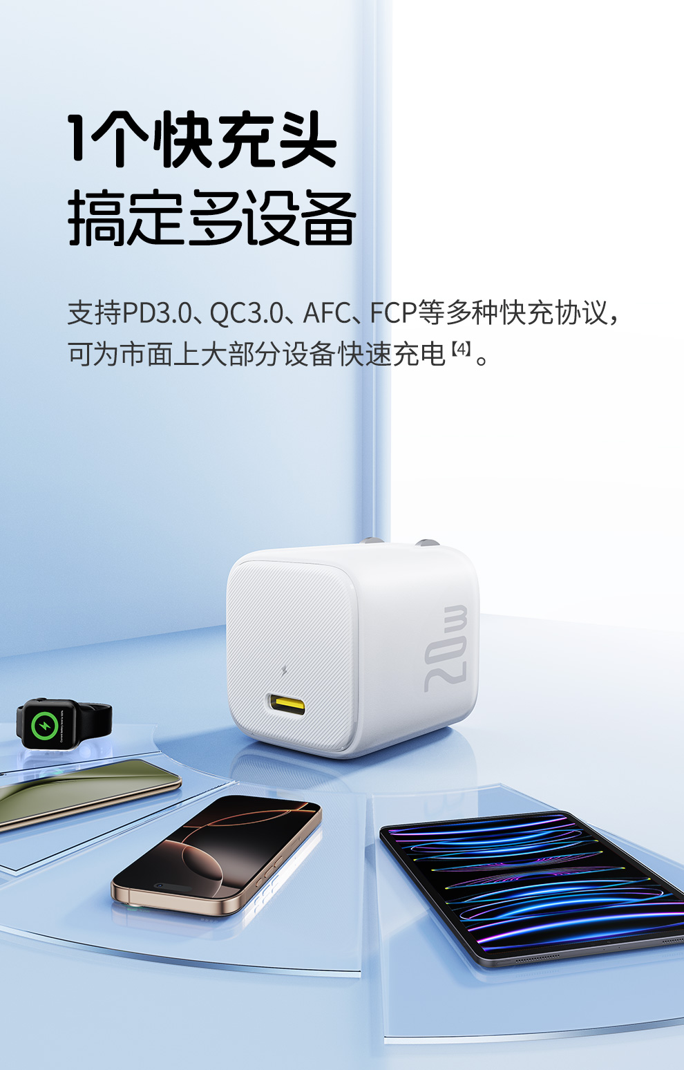 【69元3件】倍思 小方块 快充充电器 1C 20W 折叠款