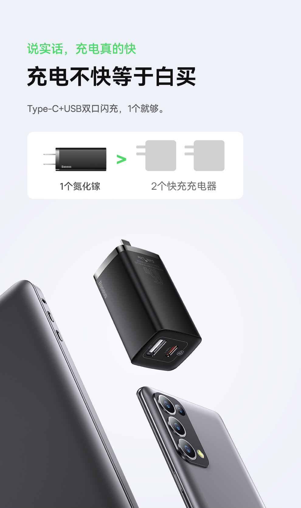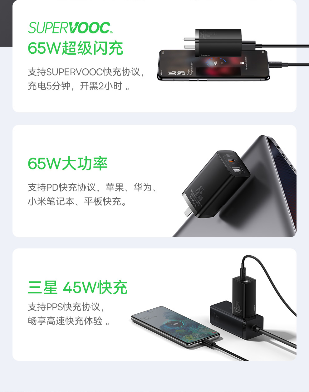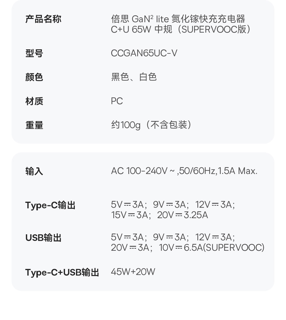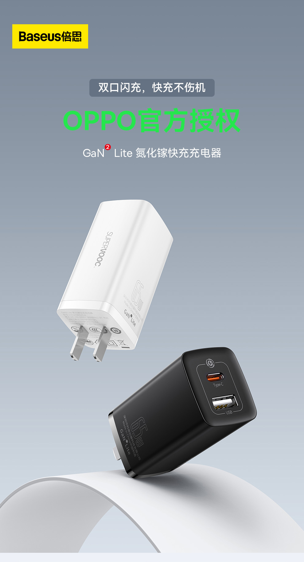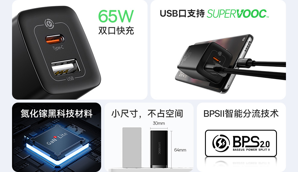 倍思 GaN2 lite 氮化镓快充充电器C+U 65W 中规(SUPER VOOC版)