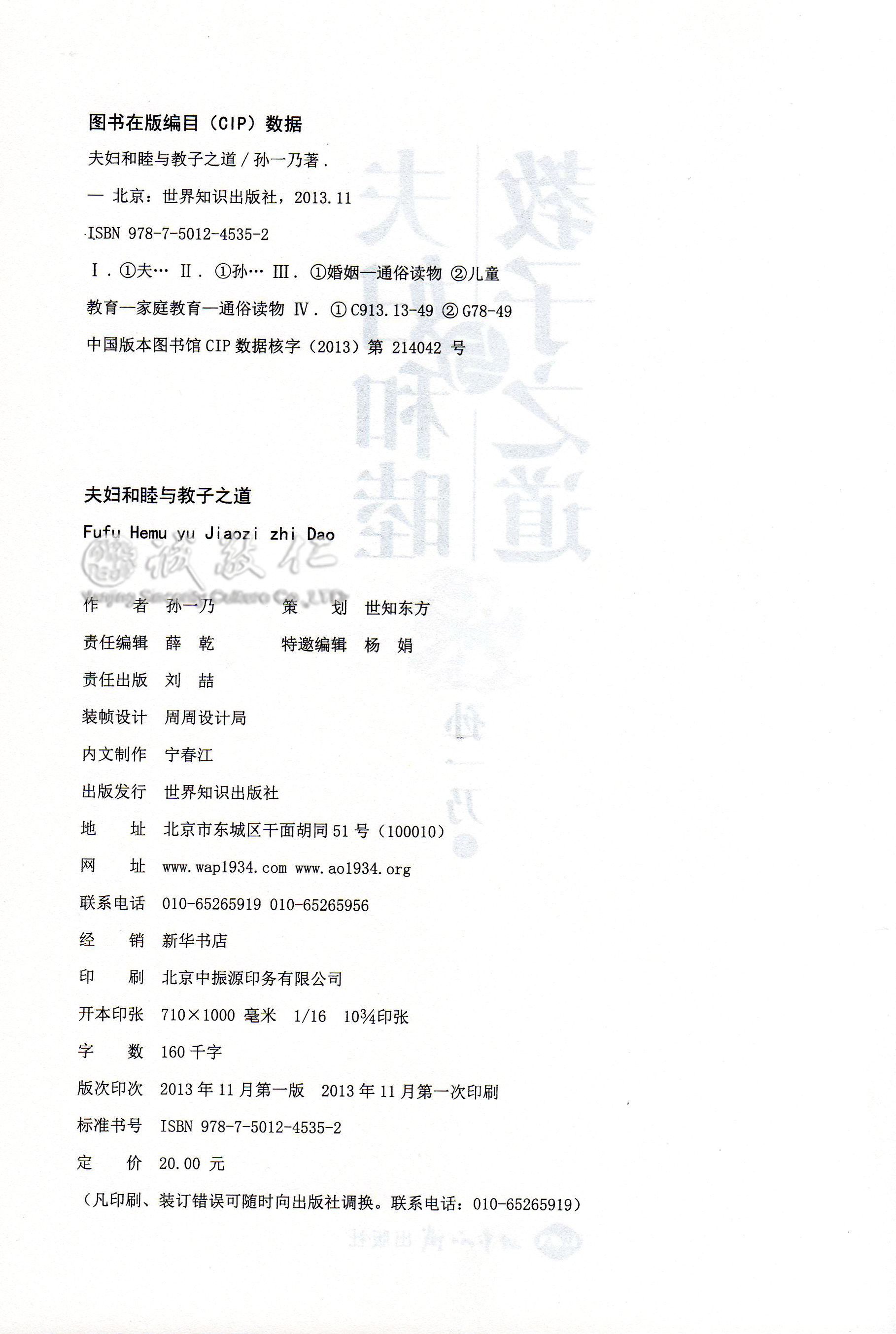 【基本信息】: 产品名称:夫妇和睦与教子之道 作者:孙一乃 出版社:世界知识出版社 ISBN:9787501245352 页码:172页 出版日期:2013年11月 版本:第1版 装帧:平装 开本:1/16 正文语种:中文简体 定价:20.00元 特价:11.00元(5.5折),为您节省9元! 【作者简介】: 孙一乃,香庐书院创始人,孝道智慧、事业禅、工作道发起人,心性五行理论推广人。曾任某报社部门 主任。1998年有志于中国文化构建事业,2010年正式开办孝道智慧公益课程,迄今已有上万学员从学,受益者 不可胜数。 【编者推荐】: 孙一乃老师及其强大团队的计划之一是,公益举办一千场孝道智慧的大会,影响一千万个家庭。从2010年 到现在,已有上万学员从学,受益者不可胜数。所以,本书有潜力成为畅销书和长销书! 本书内容是孙一乃老师主讲的“孝道智慧”课中的部分。同年7月本社出版了蔡礼旭的《如何建 立和谐尊重的两性关系》,这两本书虽然讲的都是夫妇如何相处、孩子如何教育,但是内容、风格迥异的 两本书,本书尤其侧重把大道善巧地落实在具体生活中,许多面临困惑的读者可以从中找到直接、有效的解决 方式,同时还能深刻理解其中的原理,尤其让人耳目一新。 为广利世间,本书作者孙一乃老师自愿放弃稿费,因此本书定价不高,与市场同类书籍相比有一定竞争力 。 【内容简介】: 传承圣贤教育,连通福脉慧脉,接续幸福之源,无数人受益的福慧书! 夫妇和睦与教子之道是人生重要的课程,也是孙一乃老师主讲的“孝道智慧”课中的部分。孙 一乃老师针对现代人面临的普遍困境和人生课题,融合中华传统文化儒释道的精髓,以孝道为切入点,传承圣 贤教育,结合现代心理学的成果,帮助人连同福脉慧脉,切实揭示了人生的幸福与财富之道,是一部经过 无数人印证的福慧书。 婚姻是种修行 夫妇循礼 家庭安位 夫义妇德 如何求得好姻缘 古人的教育方法 如何正确地教育孩子 培福积慧有多重要 传道就是教孩子如何做人 …… 【目 录】: 家庭和谐是中国文化之根……………………V 夫妇和睦篇 讲 婚姻是种修行………………………002 离婚率飙升的背后/ 002 “情”和“爱”的区别 / 004 爱情的三个阶段和婚姻的四个状态/ 006 美满爱情与婚姻的五大秘诀/ 007 婚姻大事的诀窍/ 009 天性与地性/ 011 夫妇循礼是家庭和睦的良方/ 012 第二讲 夫妇循礼……………………………014 夫妇有别,阴阳合位/ 014 人格平等,阴阳平衡/ 017 分工不同,阴阳归位/ 022 第三讲 家庭安位……………………………027 位置错了就是病态/ 027 各安其位/ 027 血缘与非血缘关系的家庭安位/ 028 外遇的父亲和家庭暴力/ 030 如何面对家庭矛盾/ 032 再婚的家庭和生病的孩子/ 034 现实顺序优先原则/ 036 儿子扮演父亲,痛苦就开始了/ 039 心安则一切安/ 041 第四讲 夫义妇德……………………………043 做个“三义”男人/ 043 做个“四德”女人/ 048 第五讲 如何求得好姻缘……………………059 志同道合/ 059 互补性/ 061 好对象靠的是感召/ 063 老实不等于人品好/ 065 教子之道篇 讲 当前教育问题的反思………………070 人生重要的课程缺位:夫妇和睦与教子之道/ 070 师道尊严没有了/ 071 古今教育的差别/ 072 教育不得法,把孩子教成了机器/ 072 尊师,是给自己接慧脉 / 073 慧脉不足,拒听老师讲课/ 074 福慧不足,聪明反被聪明误/ 075 第二讲 古人的教育方法……………………076 胎教/ 076 婴幼儿养性:开启户牖性惟善/ 079 少儿养正:培养端正的心行/ 082 青年养志:志在君国圣贤/ 084 第三讲 如何正确地教育孩子………………087 人的成功离不开福脉与慧脉/ 087 扎根教育,重要的是夫妇和睦/ 087 阴阳归位的引导教育/ 089 乐学,才是学习的层次/ 092 烧炉子的启示/ 093 教育误区:拔苗助长/ 095 第四讲 培福积慧的重要性…………………096 孩子的发展与福慧的关系/ 096 增长智慧福德的方法/ 097 家长如何替孩子增智慧福田/ 098 孩子如何为自己种福慧/ 101 第五讲 传道就是教孩子如何做人…………102 孩子的智能不同,要因材施教/ 102 教育的两大法则/ 103 自发学习,快乐学习/ 104 关于儿童的早期教育…………………………106 人之初,先养性/ 106 国学教育如何影响孩子/ 108 养儿先养根,养根在感恩/ 110 身教大于言教/ 114 教育成败在心灵/ 115 穷养儿,富养女? / 117 让孩子快乐地学习传统文化/ 120 家长应该和孩子做朋友吗? / 123 “虎爸虎妈”真能教出好孩子吗? / 124 附录一:经典摘录……………………………129 古代夫妻和睦的经典故事/ 129 女人的修德之路/ 132 夫妻吵架十忌/ 134 “四摄法”教你处理濒临破裂的夫妻关系/ 136 印光大师谈女性做人修行/ 138 印光大师谈母教的重要/ 140 附录二:学员分享……………………………148 解决世界危机的钥匙…………………………159 【精彩内容】: 现在孩子的教育问题,父母是难做的,因为涉及夫妻双方价值观的问题。现在中国人是可怜的,面临 着中西方文化极大的冲击。有的母亲接受了西方教育思想,而父亲接受了中国的教育思想,那教育孩子时必然 出现极大冲突,孩子就变成两个人战争的牺牲品。 ...... | ||
