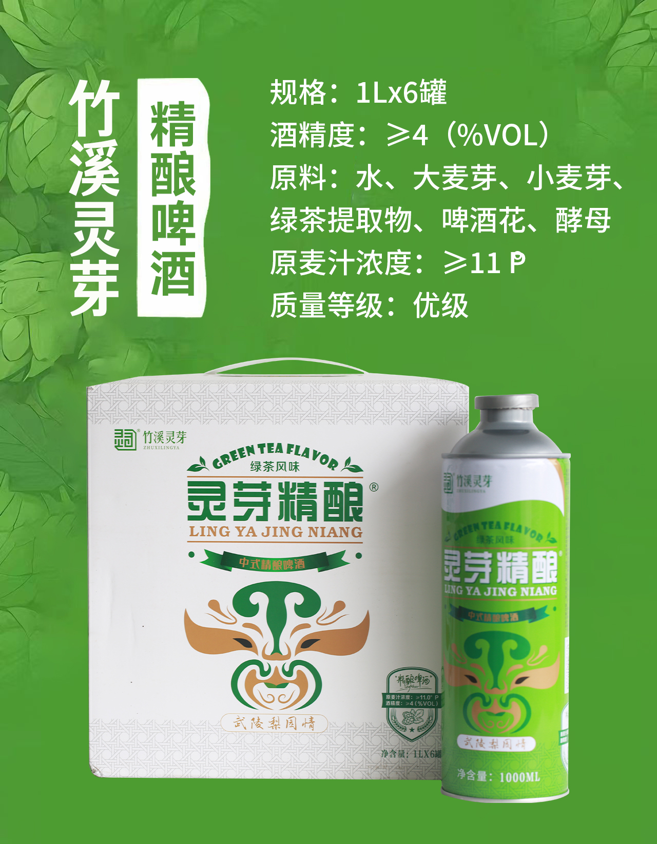 【2瓶十堰主城区包邮】竹溪灵芽 绿茶风味灵芽精酿 1L/瓶