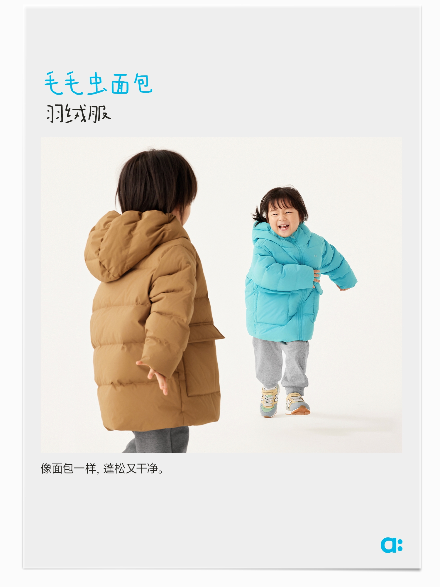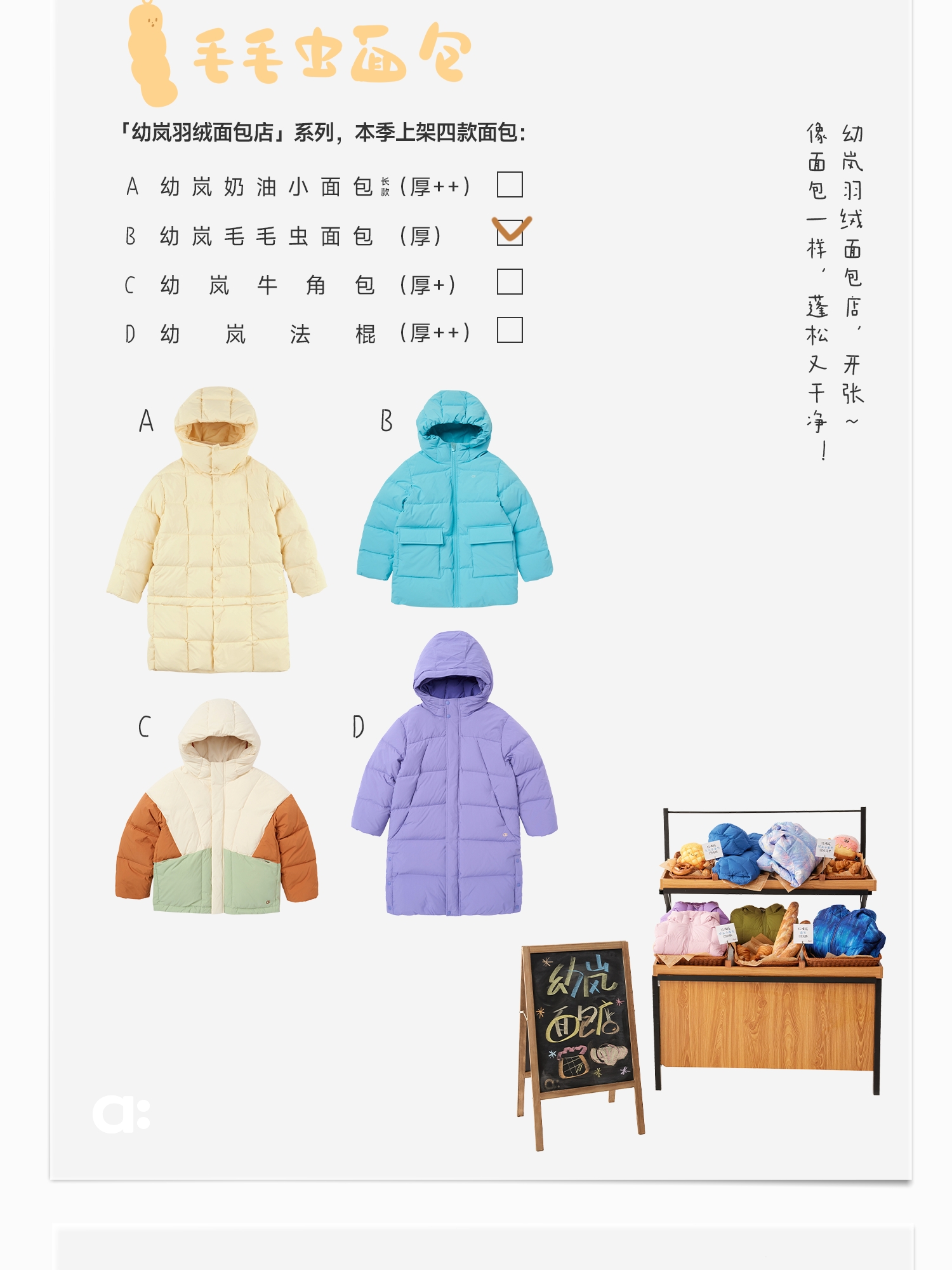 幼岚童装「毛毛虫面包」羽绒服保暖防风24年冬新款儿童中长款外套ZY