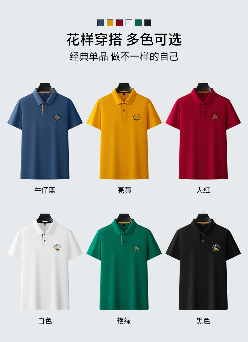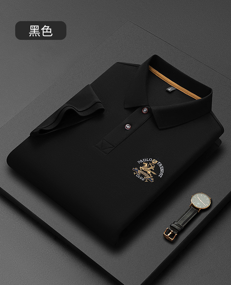 派森龙夏丝光双面珠地短袖男士polo衫商务休闲刺绣纯色翻领男POLO